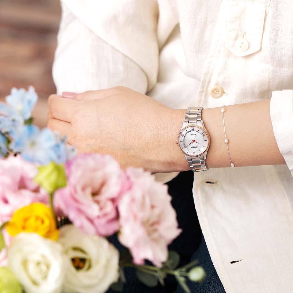 光発電『エコ・ドライブ』は、太陽光や室内のわずかな光を電気に換え、時計を動かしつづけるシチズン独自の技術です。一度フル充電すれば、光のないところでも長時間動き続けるので、定期的な電池交換は必要ありません。