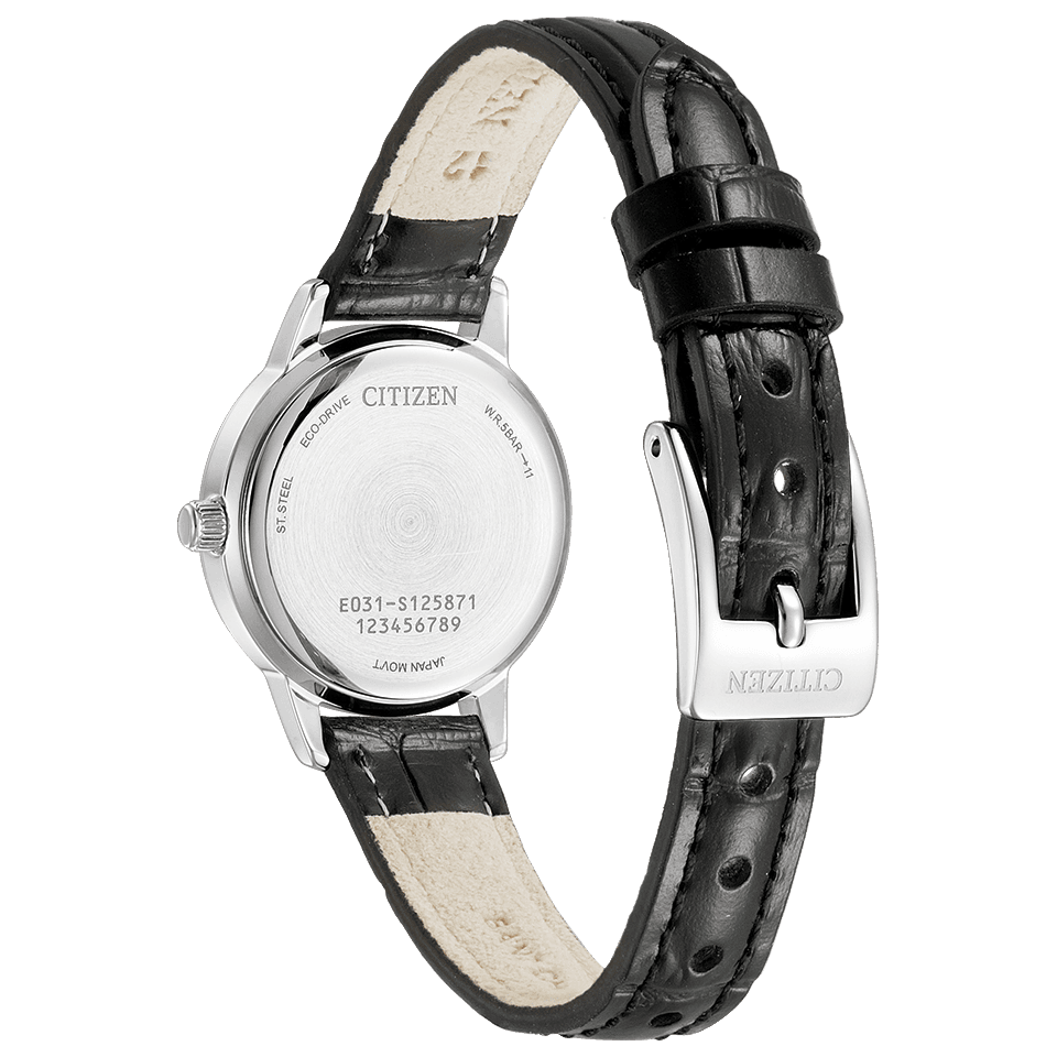 光発電『エコ・ドライブ』は、太陽光や室内のわずかな光を電気に換え、時計を動かしつづけるシチズン独自の技術です。一度フル充電すれば、光のないところでも長時間動き続けるので、定期的な電池交換は必要ありません。