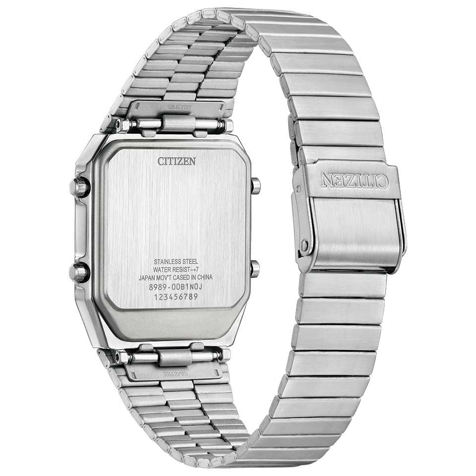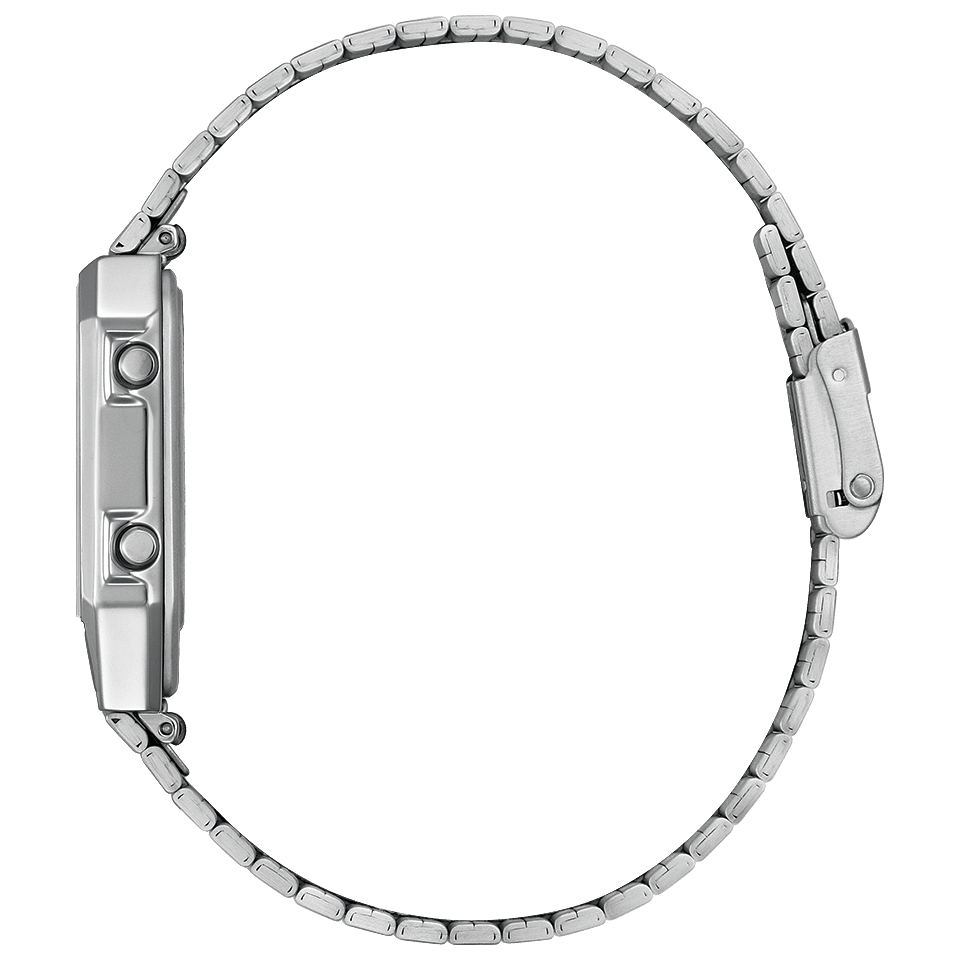 1980年代に登場した、レトロフューチャーなデザインが現在でも大人気のアナデジテンプより、限定モデルが登場。ケース、バンド、文字板にステンレスを使い、全体をワンカラーでまとめた高級感あふれるフルメタル仕様です。文字板の上板に施した粗いヘアラインが、メタルの質感をきわだたせます。