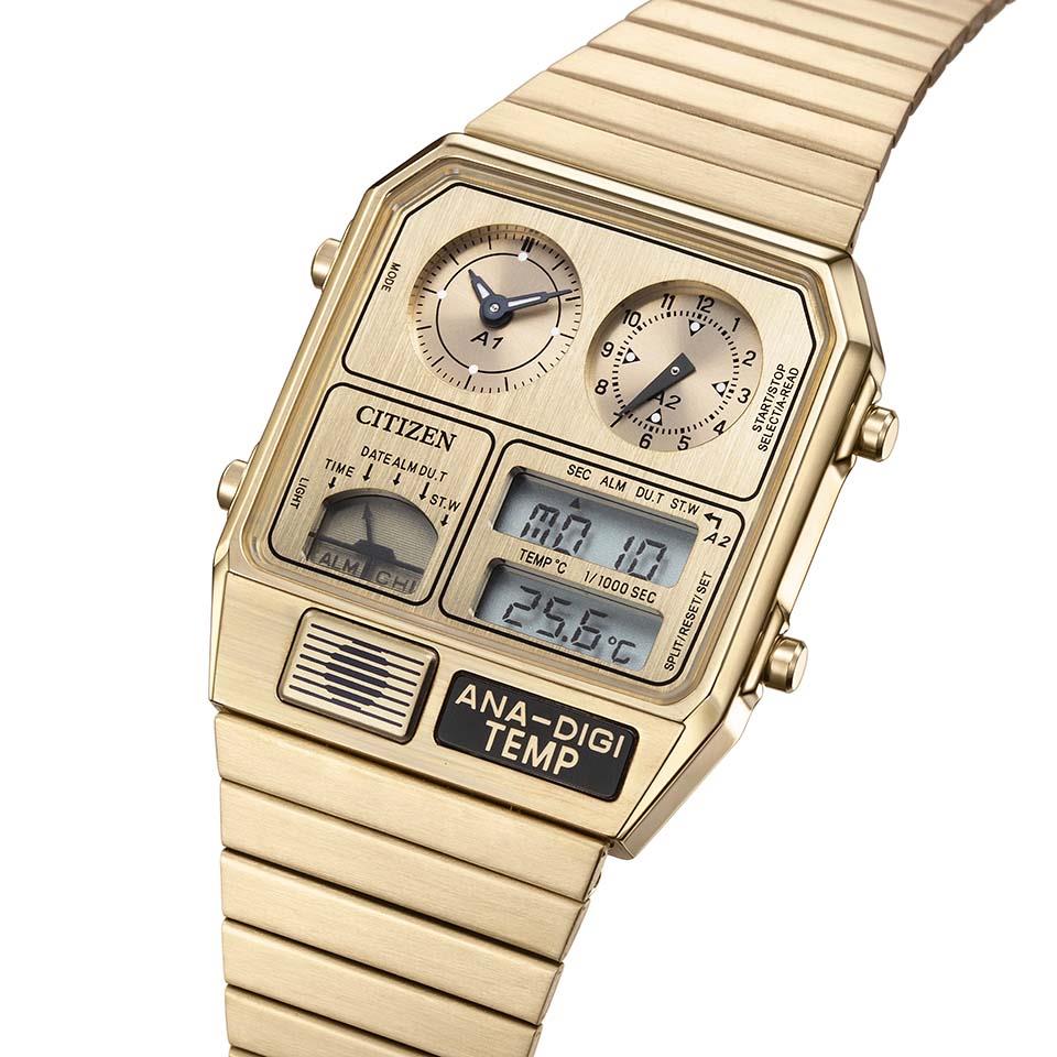 1980年代に登場した、レトロフューチャーなデザインが現在でも大人気のアナデジテンプより、限定モデルが登場。ケース、バンド、文字板にステンレスを使い、全体をワンカラーでまとめた高級感あふれるフルメタル仕様です。文字板の上板に施した粗いヘアラインが、メタルの質感をきわだたせます。