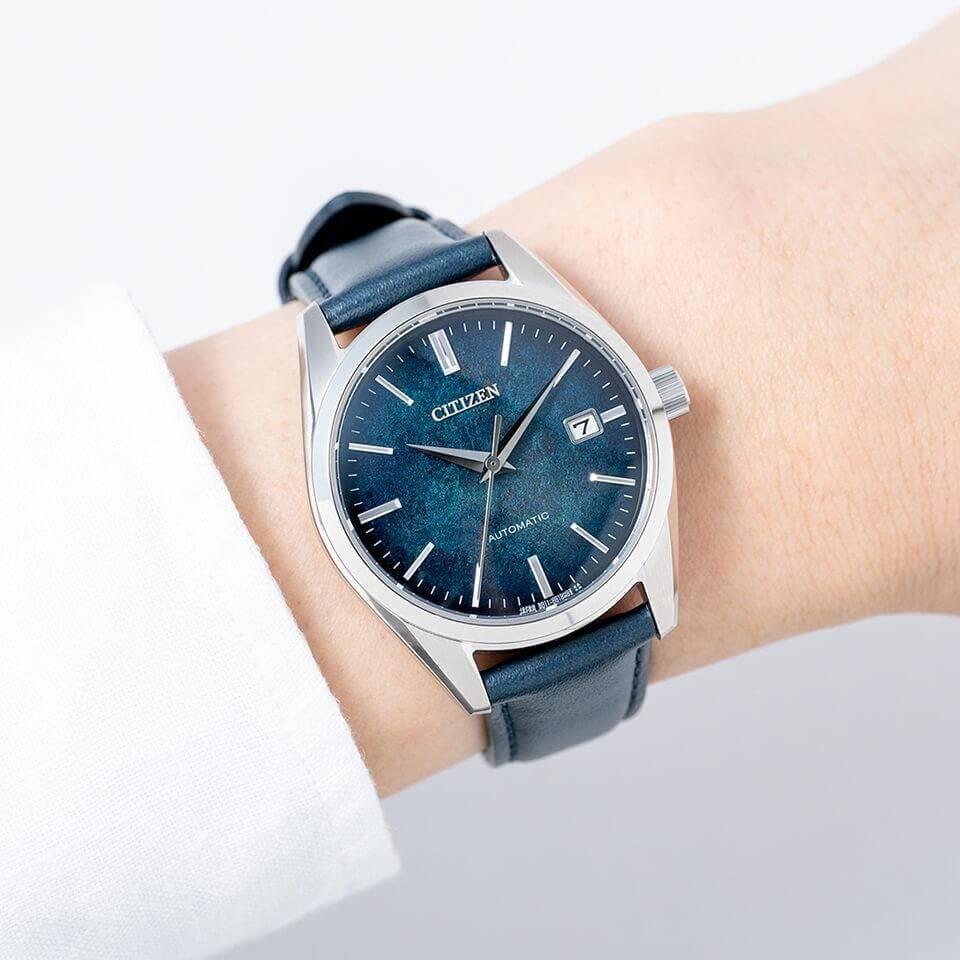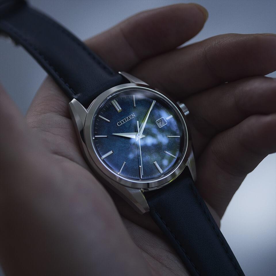 銀箔漆文字板モデルCITIZENがこれまで使ってきた伝統の技「漆」と「銀箔」を組み合わせた文字板。深みのある鮮やかさと日本らしさを前面に押し出したデザインです。ケース径38.2mm(設計値)のスマートなサイズ感。日常のあらゆるシーンに違和感なくフィットするデイト付のベーシックなモデルです。