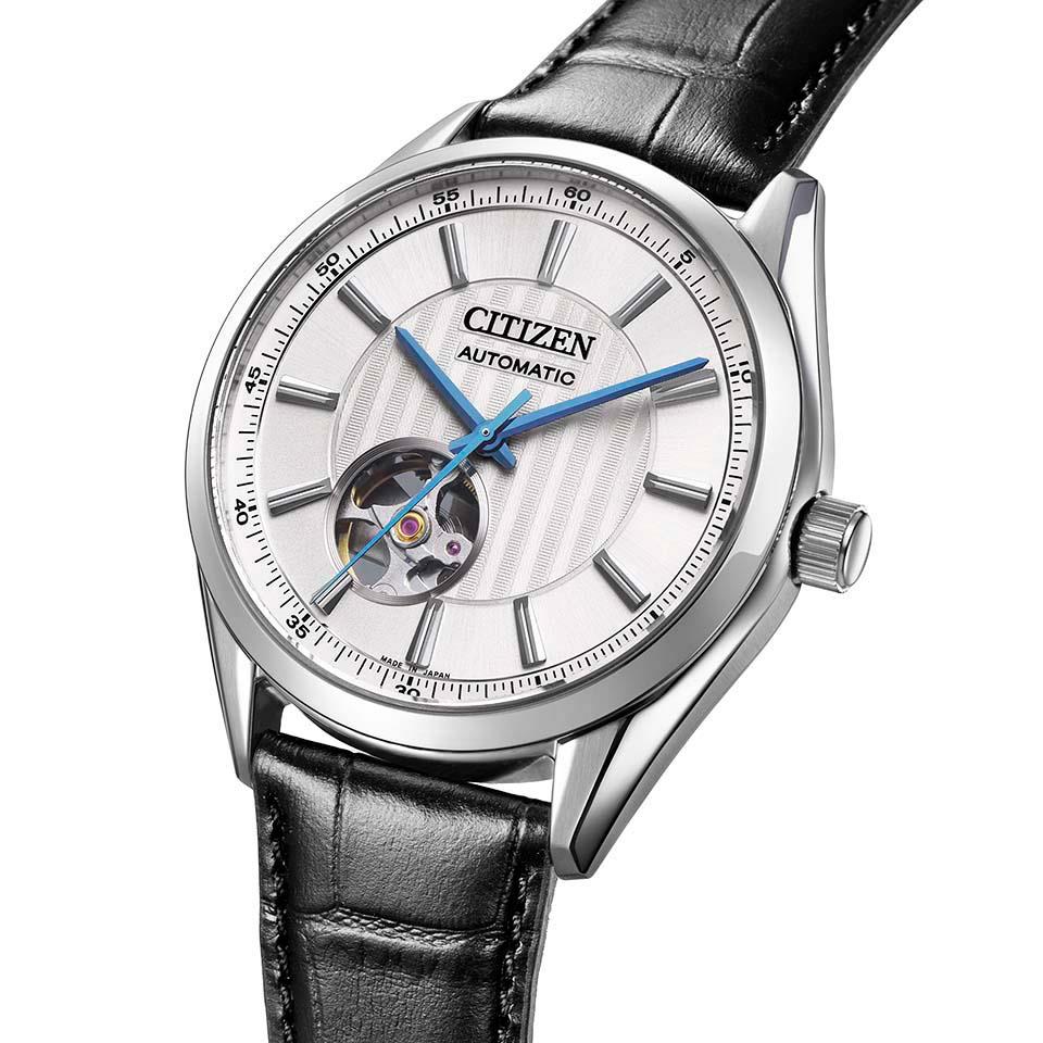 人気の高いメカニカルウオッチが新デザインで登場。クラシカルな印象が際立つ革バンドモデルをラインアップしています。文字板7時の位置から、メカニカルウオッチの心臓部であるテンプの繊細な動きを堪能できるオープンハート仕様で、中央部分に描かれた縦基調のパターンがクラシカルな表情を強調。時刻を合わせる際、りゅうずを引き出すと秒針が止まる「秒針停止機能」を搭載しています。