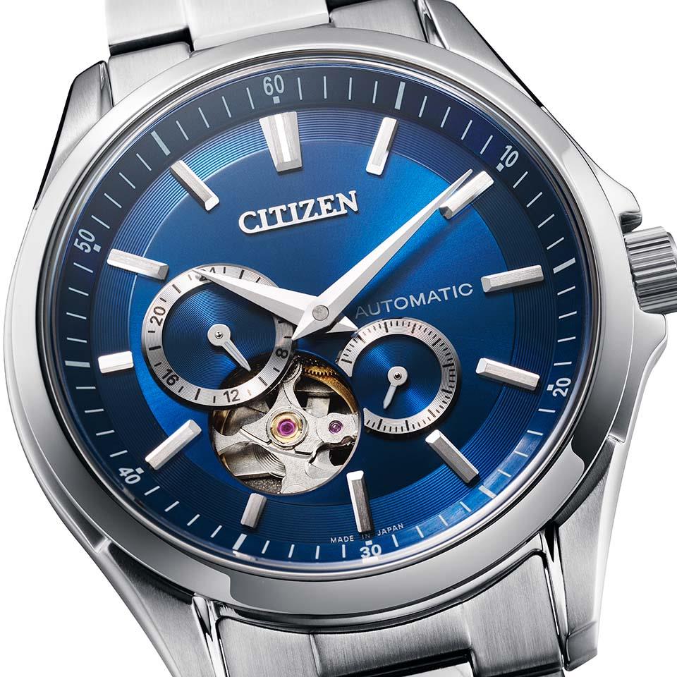 秒停止機能を搭載したキャリバーを搭載。2つの別体リングを組み合わせた立体感、重厚感のあるデザイン。60秒針仕様のサブダイヤルなど、こだわりの機能を搭載しています。文字板7時の位置から、メカニカルウオッチの心臓部であるテンプの繊細な動きを堪能できるオープンハート仕様で、裏ぶたは回転する錘(おもり)部分とメカの動きを楽しめるシースルーバック。ご自身で、簡単にバンドのサイズが調整できるシンプルアジャスト仕様です。