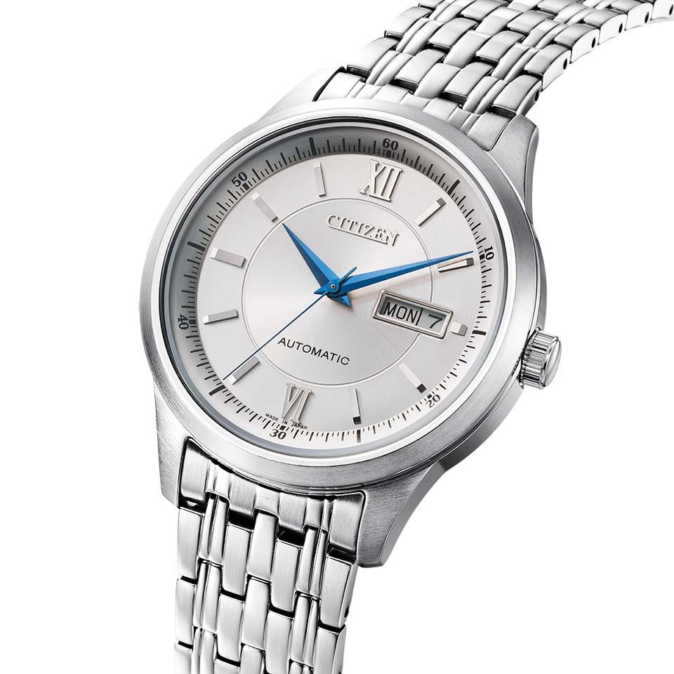 秒停止機能を搭載したキャリバーを搭載。メカニカルウオッチの人気モデルがデザインをリニューアルしました。文字板は、視認性に優れたシンプルなデザイン。日付と曜日がすぐ確認できるデイ&デイト機能がついています。裏ぶたは、回転する錘(おもり)とメカの動きを楽しめるシースルーバック。
