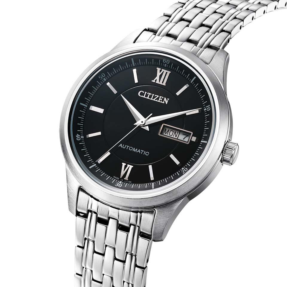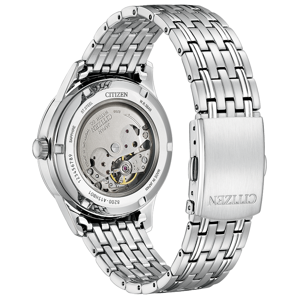 秒停止機能を搭載したキャリバーを搭載。メカニカルウオッチの人気モデルがデザインをリニューアルしました。文字板は、視認性に優れたシンプルなデザイン。日付と曜日がすぐ確認できるデイ&デイト機能がついています。裏ぶたは、回転する錘(おもり)とメカの動きを楽しめるシースルーバック。