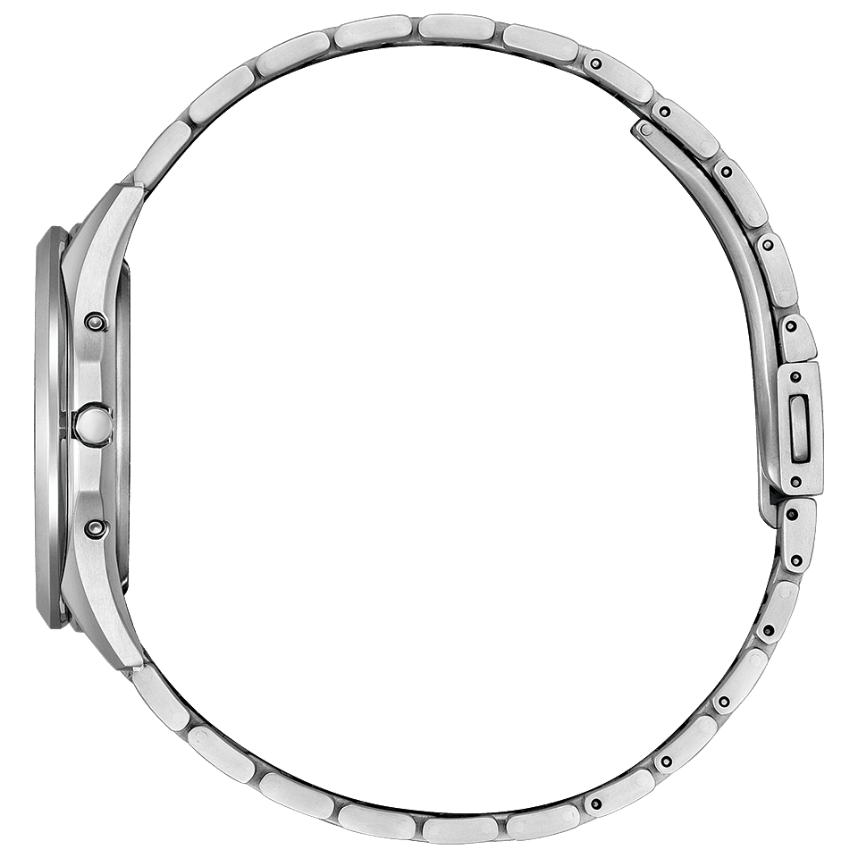 薄型にこだわったデイ&デイト表示付きのシンプルでエレガントなデザイン。明るく透き通るような色調のデュラテクトプラチナを施したケースとバンドが上品な輝きを放ちます。