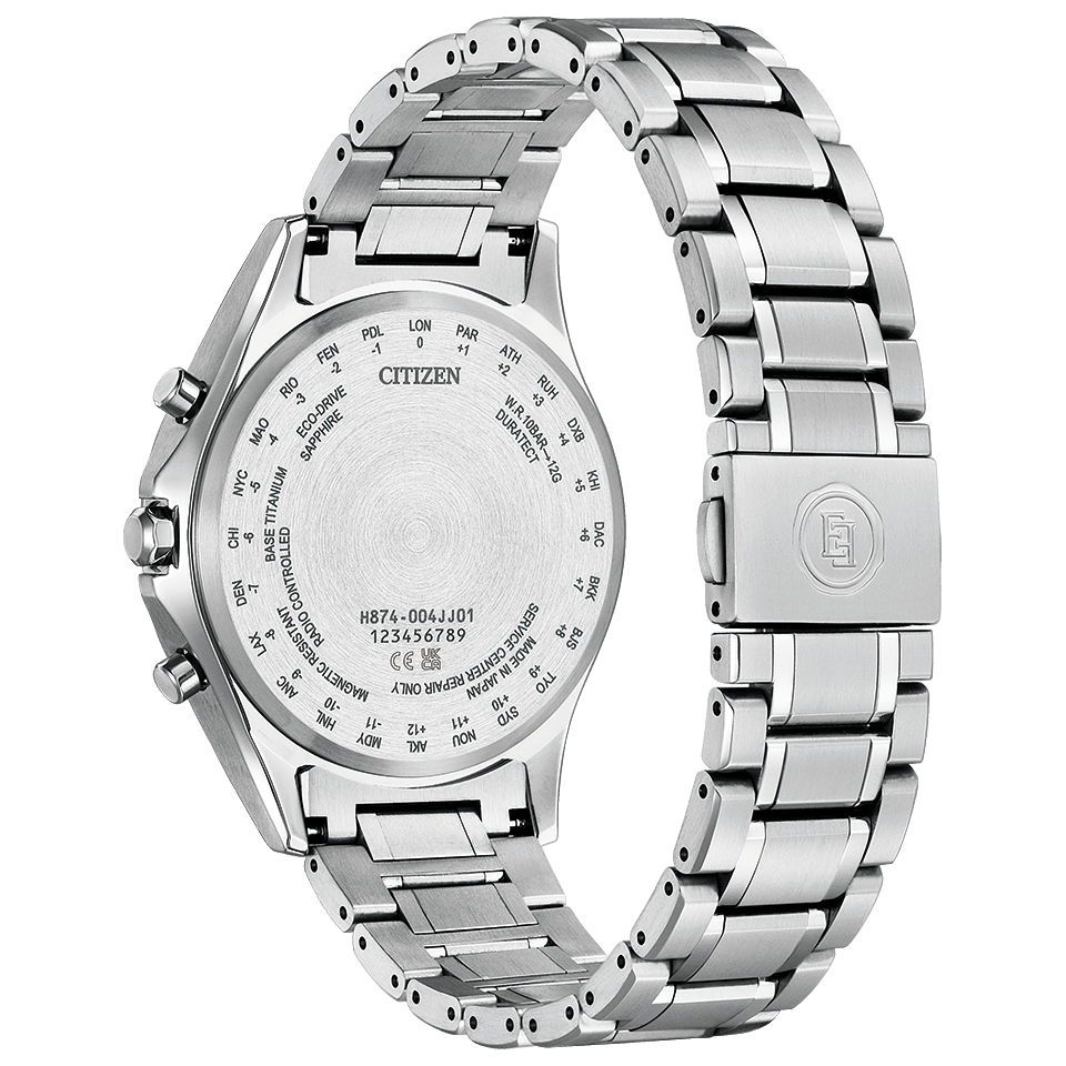 10万年に1秒の誤差と言われる原子時計をもとに送信される標準電波を受信し、日本、中国、アメリカ、ヨーロッパの世界4エリアで自動的に時刻やカレンダーを修正します。