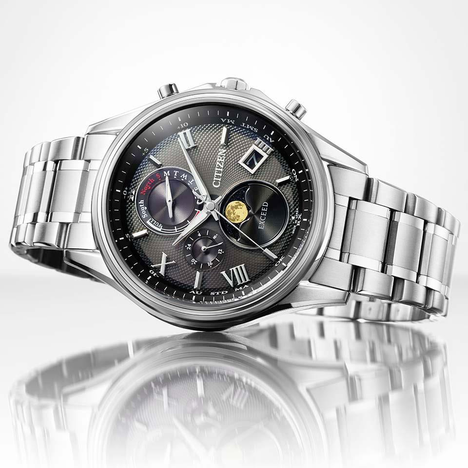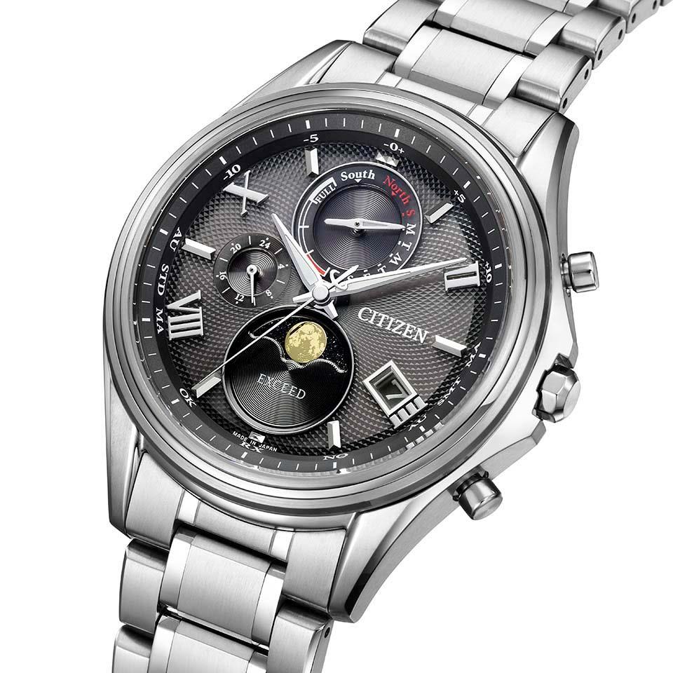 3連リングベゼルが、月の周りに広がる光の輪「月暈(つきがさ)」をイメージにしたモデルです。この現象は「幸せの訪れを意味するもの」として幸運のサインであるという言い伝えがあります。サン&ムーン機能を搭載した レディスモデルとのペアウオッチにおすすめです。
