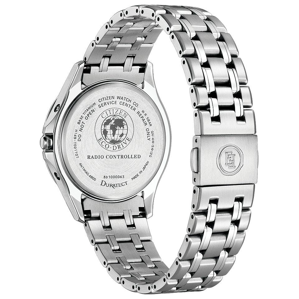 10万年に1秒の誤差と言われる原子時計をもとに送信される標準電波を受信し、日本、中国、アメリカ、ヨーロッパの世界4エリアで自動的に時刻やカレンダーを修正します。