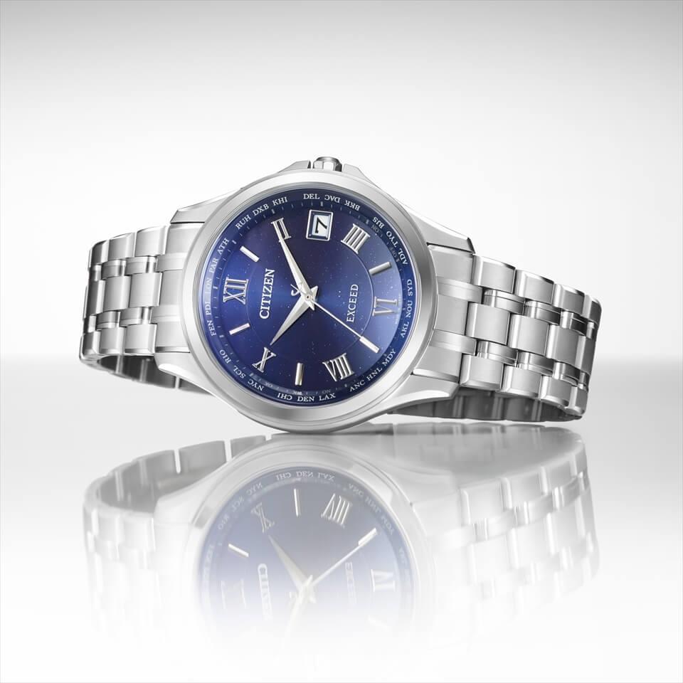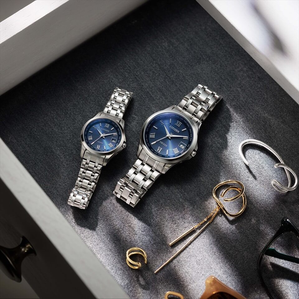 ブルーの文字板が知的で爽やかな印象に。レディスモデルとのペアウオッチにもおすすめです。