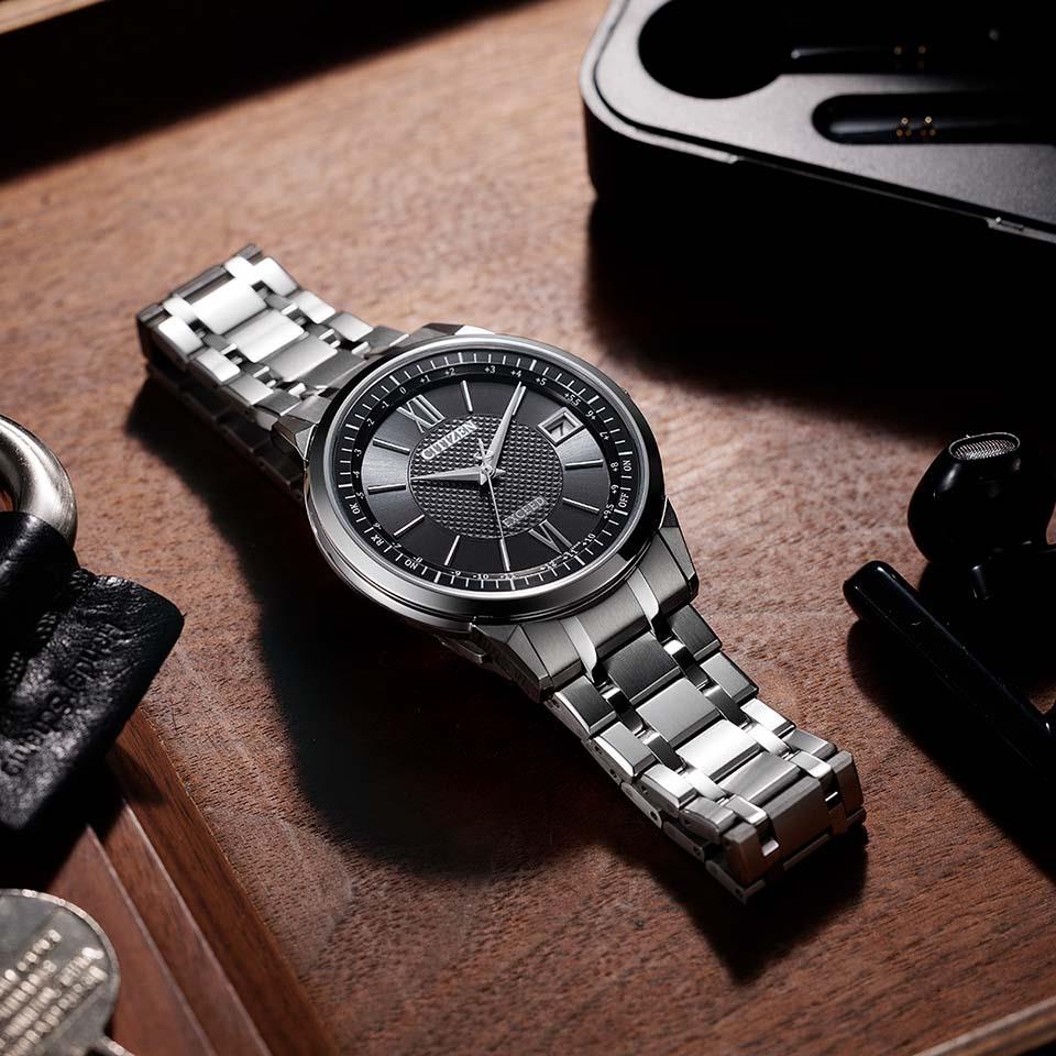 チタニウムにデュラテクト(表面硬化技術)を施したシチズン独自の素材『スーパーチタニウム』。ステンレスに比べて40%軽く、5倍以上の表面硬度を実現しています。
