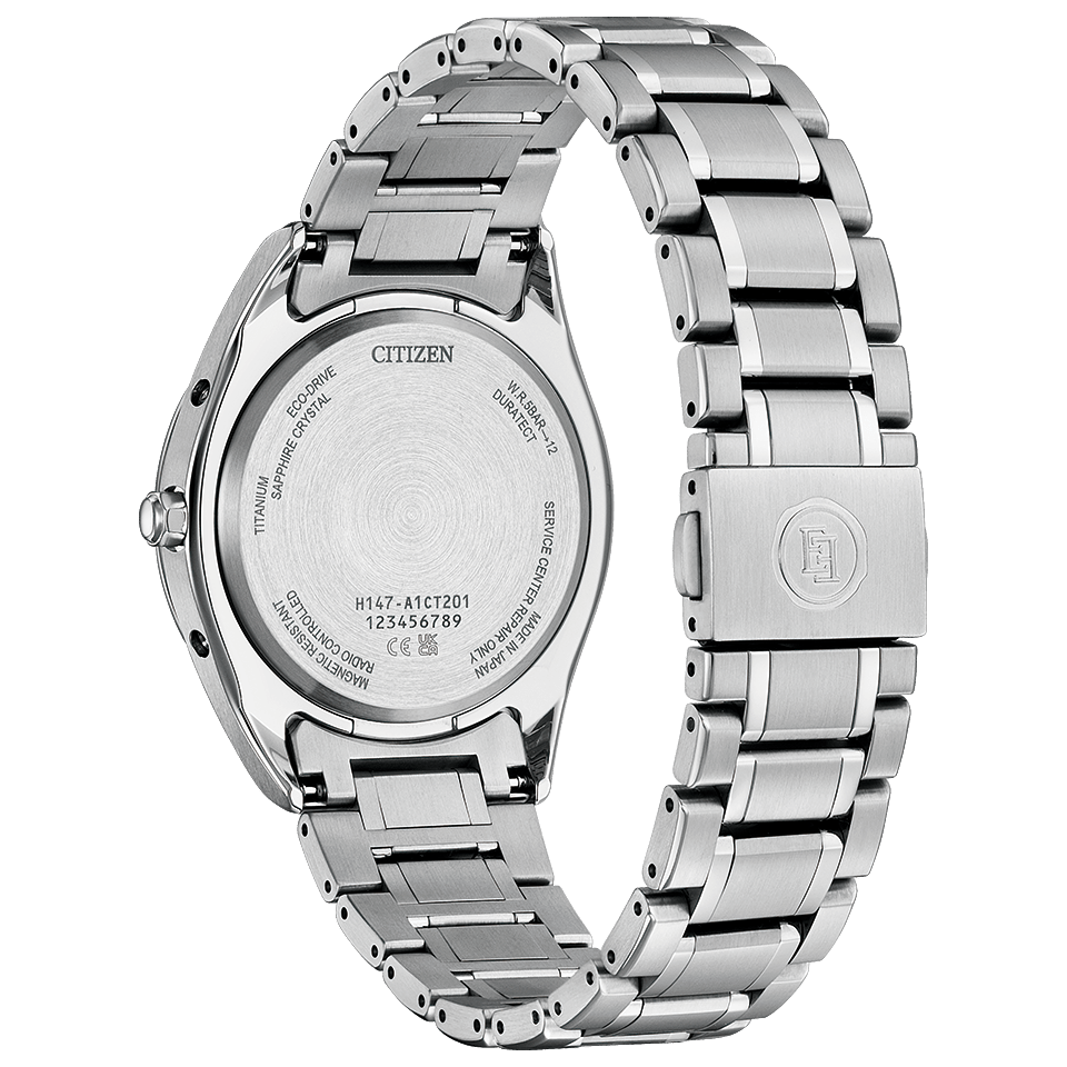 チタニウムにデュラテクト(表面硬化技術)を施したシチズン独自の素材『スーパーチタニウム』。ステンレスに比べて40%軽く、5倍以上の表面硬度を実現しています。