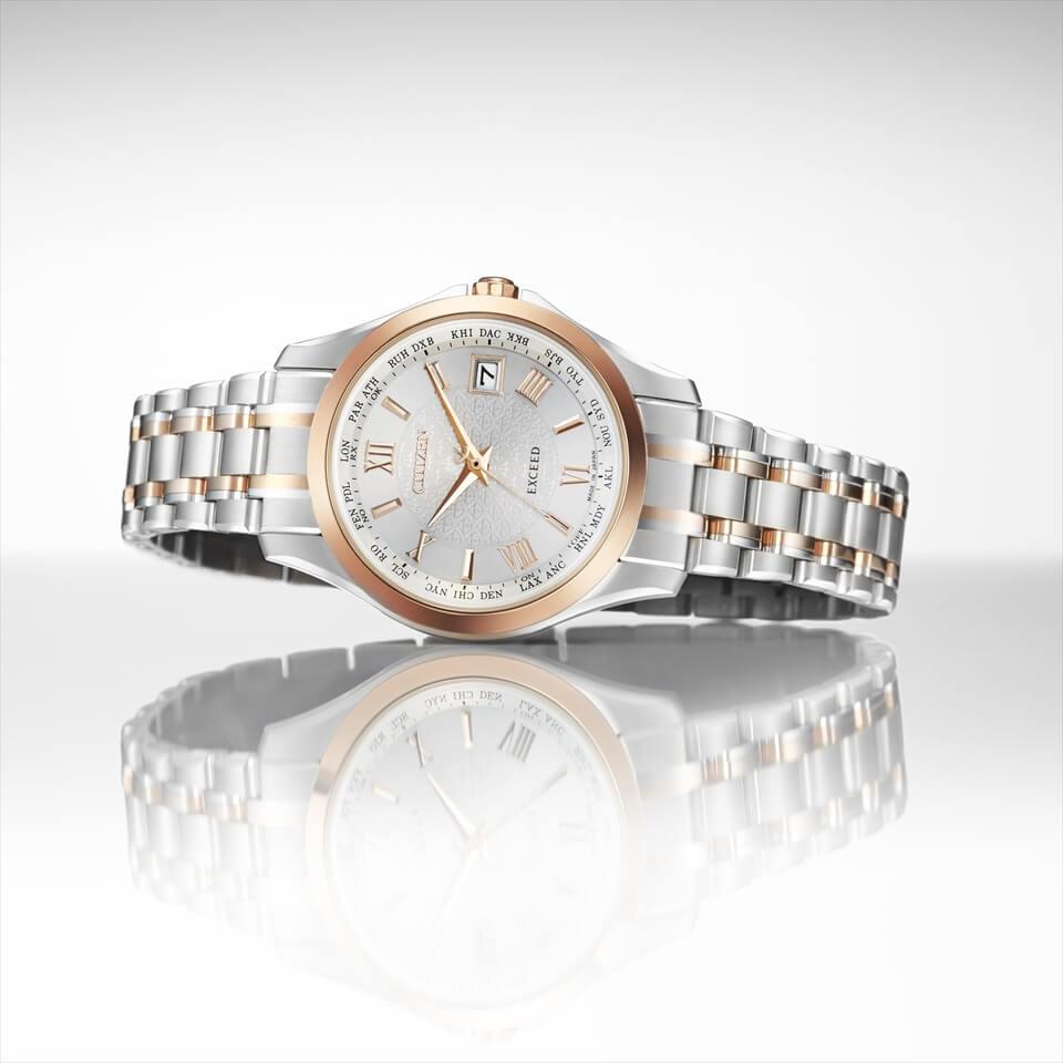 ライトシルバー×ピンクゴールドのケースが腕元を明るく華やかに彩ります。メンズモデルとのペアウオッチにもおすすめです。