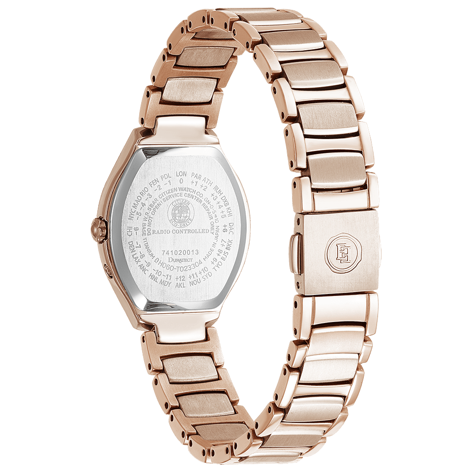 ケース・バンドに纏うのは女性の肌を明るく美しく魅せることのできるシチズンだけの特別なカラー、サクラピンク®。