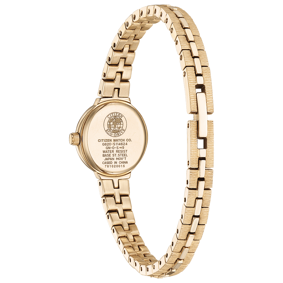 光発電『エコ・ドライブ』は、太陽光や室内のわずかな光を電気に換え、時計を動かしつづけるシチズン独自の技術です。一度フル充電すれば、光のないところでも長時間動き続けるので、定期的な電池交換は必要ありません。