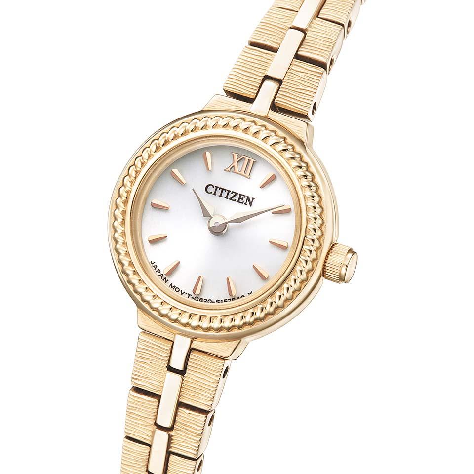 ころんとした小ぶりなラウンドケースに、時刻が見やすいシンプルでかわいらしいデザイン。文字板は温かみのあるオフホワイトカラーを採用。ベゼルのデザインモチーフは、人との結びつき・良縁を願う「紐」。紐には「ほどけることのない、結び付ける」という意味から、「人と人との結びつき・絆・あらゆる物事に対して良縁がもたらされますように」という願いが込められています。