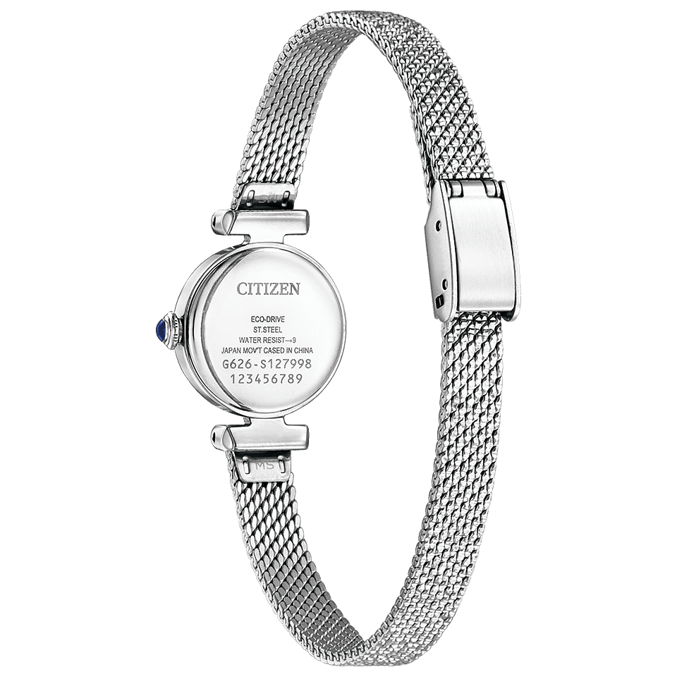 光発電『エコ・ドライブ』は、太陽光や室内のわずかな光を電気に換え、時計を動かしつづけるシチズン独自の技術です。一度フル充電すれば、光のないところでも長時間動き続けるので、定期的な電池交換は必要ありません。