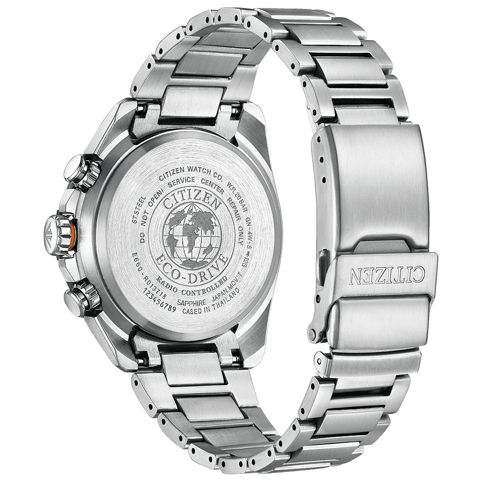 モータースポーツからインスピレーションを受けたアクティブなデザインを持った「エコ・ドライブ電波時計」。