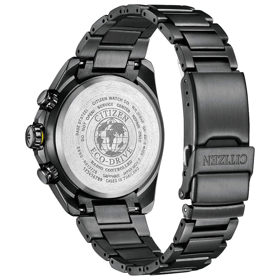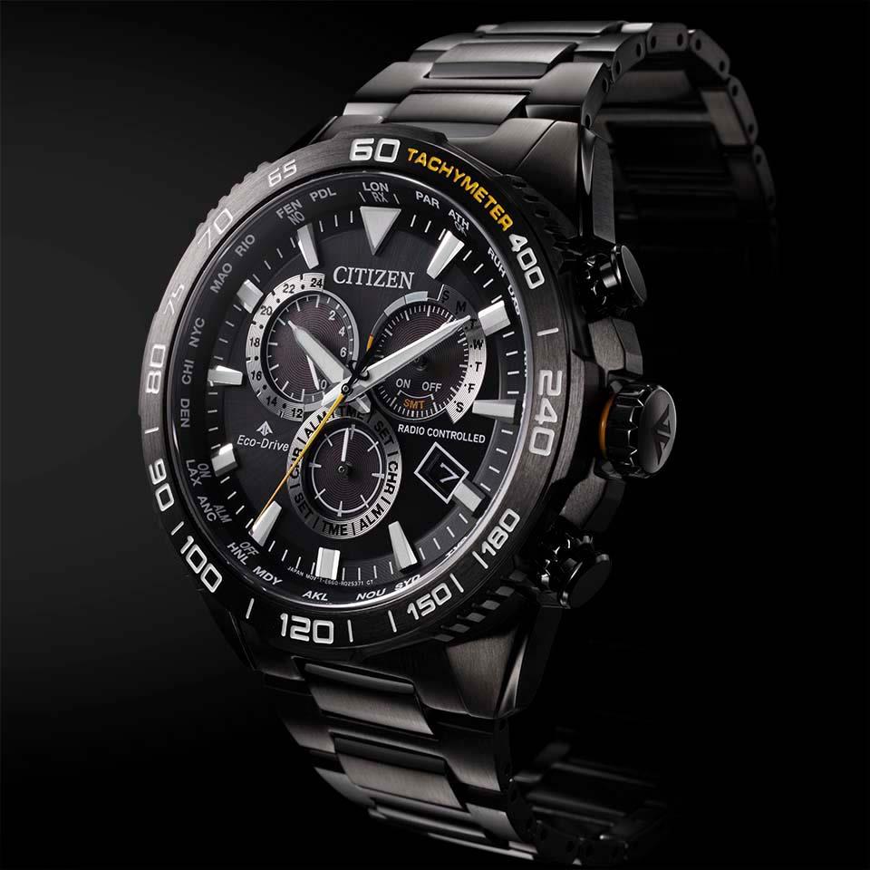 モータースポーツからインスピレーションを受けたアクティブなデザインを持った「エコ・ドライブ電波時計」。