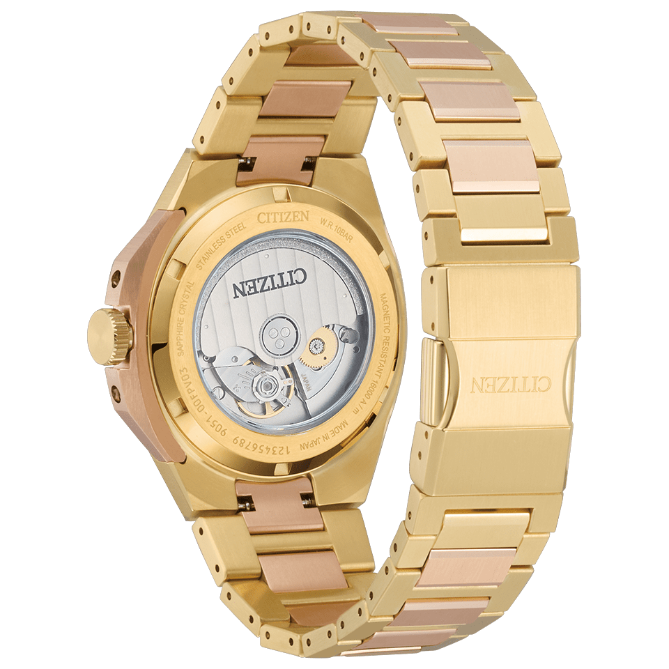 裏ぶたはムーブメントの鼓動を感じられるシースルーバック仕様。磁気による時刻のズレを防ぐシリーズエイトの基本性能「2種耐磁」も備えています。