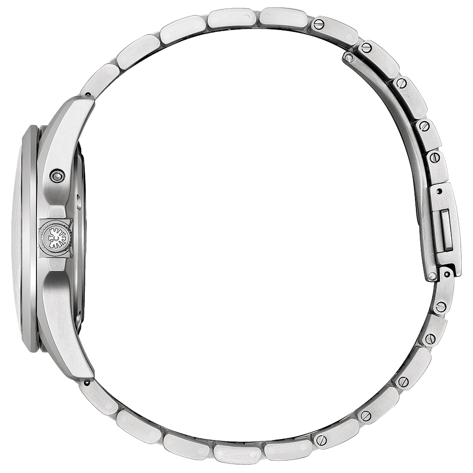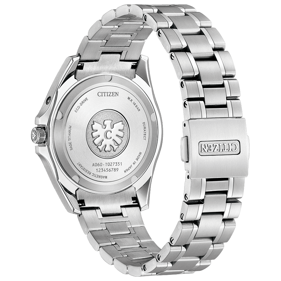 キズに強く、軽く、肌にやさしく、サビにくい、腕時計のための素材『スーパーチタニウム™』を採用。明るく透き通るような色調が特徴のデュラテクトプラチナを配し、いつまでも美しく腕時計を輝かせます。