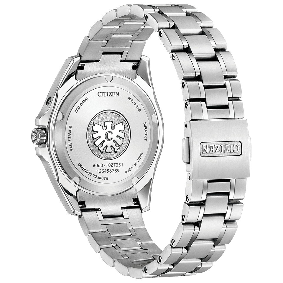 チタニウムにデュラテクト(表面硬化技術)を施したシチズン独自の素材『スーパーチタニウム』。ステンレスに比べて40%軽く、5倍以上の表面硬度を実現しています。