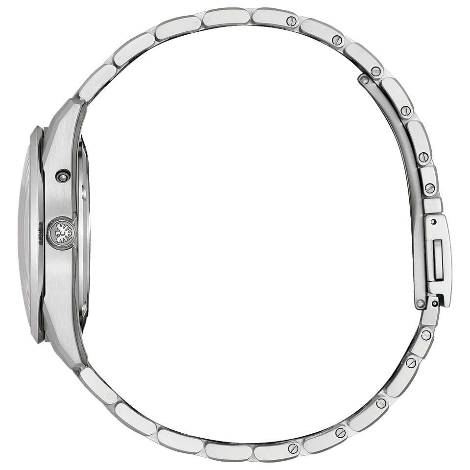 キズに強く、軽く、肌にやさしく、サビにくい、腕時計のための素材『スーパーチタニウム™』は、明るく透き通るような色調が特徴のデュラテクトプラチナを配し、いつまでも美しく腕時計を輝かせます。