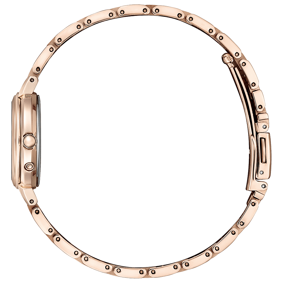 透き通る花びらの重なりをイメージした文字板と、草花のようにのびやかで柔らかな印象のインデックス。光の角度によって淡く繊細に浮き出る花びらのパターンが女性らしい手元を演出します。