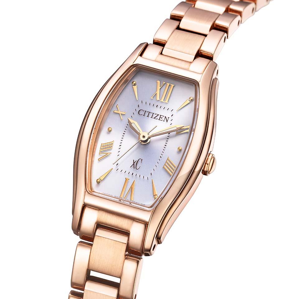 華奢でエレガントな長角ケースのエコ・ドライブモデル。ケースサイドのフローラインがしなやかな女性らしさを表現しています。文字板のインデックスには柔らかい印象のローマ数字を採用。時分秒針の3針なので、時間も見やすく実用的なモデルです。バンドは長さ調整が手軽なシンプルアジャストバンド。