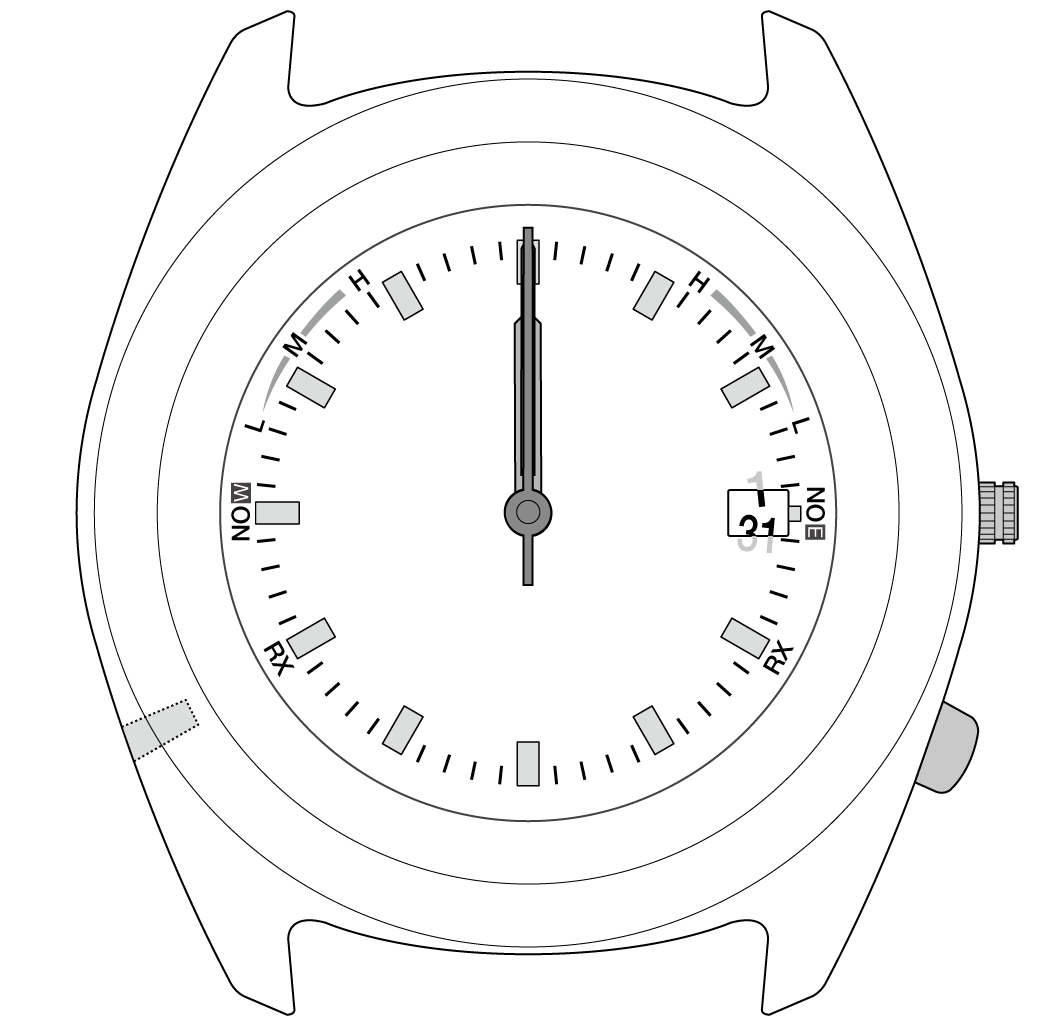- 各表示が正しい基準位置からずれていると、時刻情報を受信しても、時刻・カレンダーが正しく表示されません。