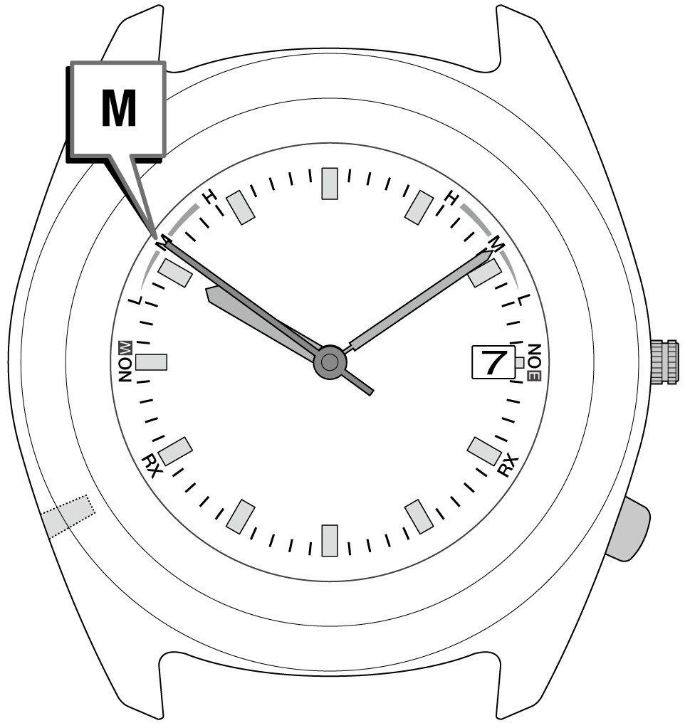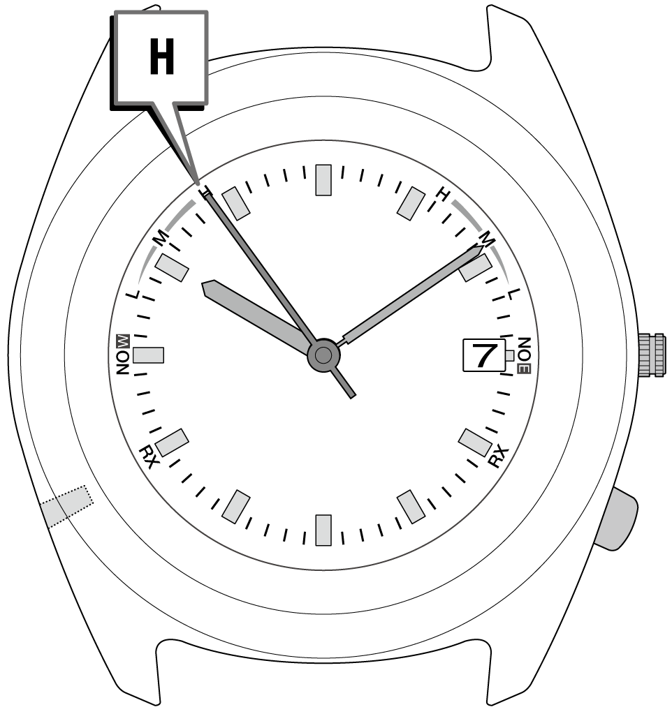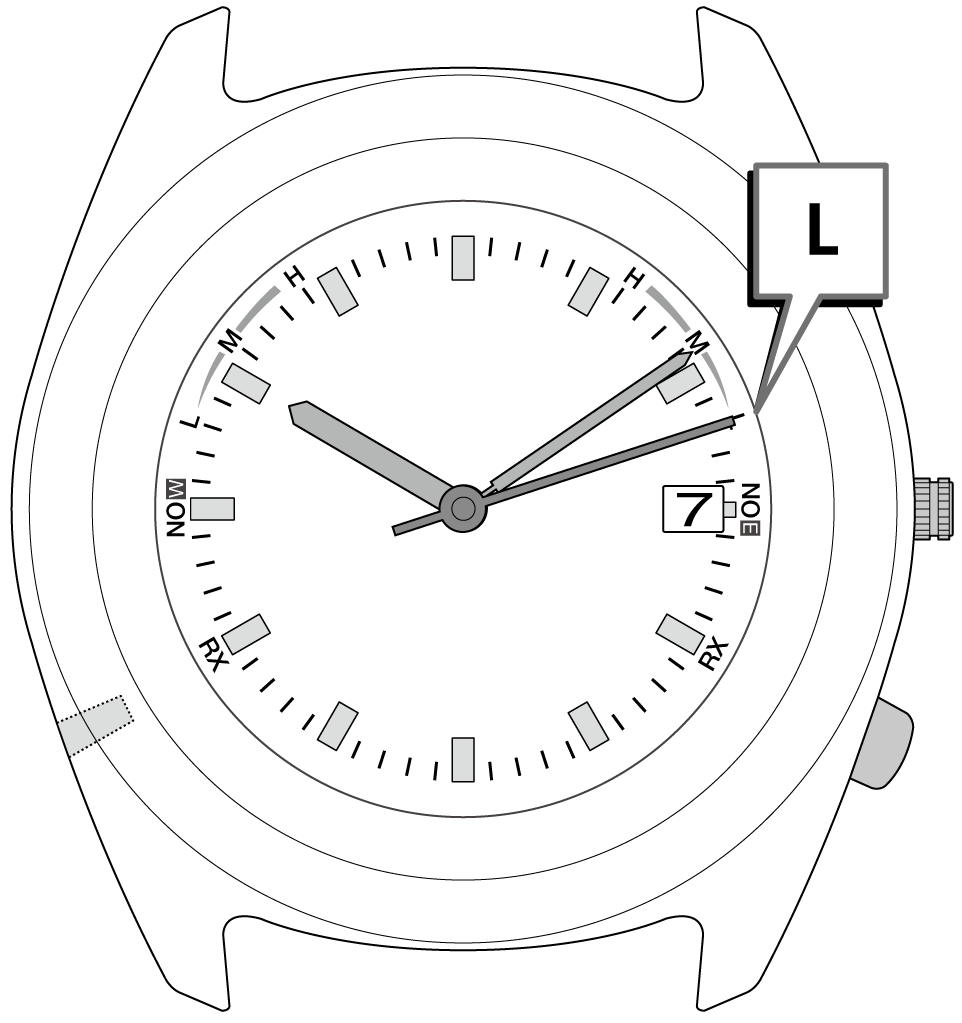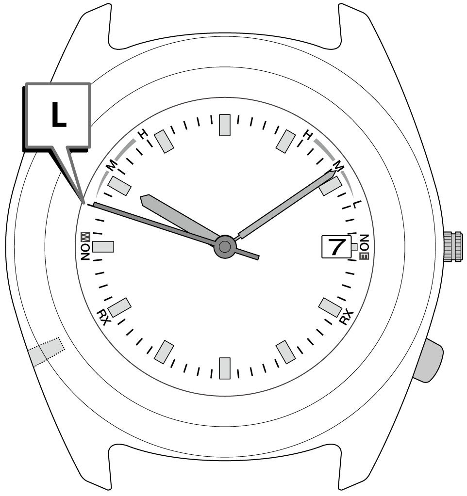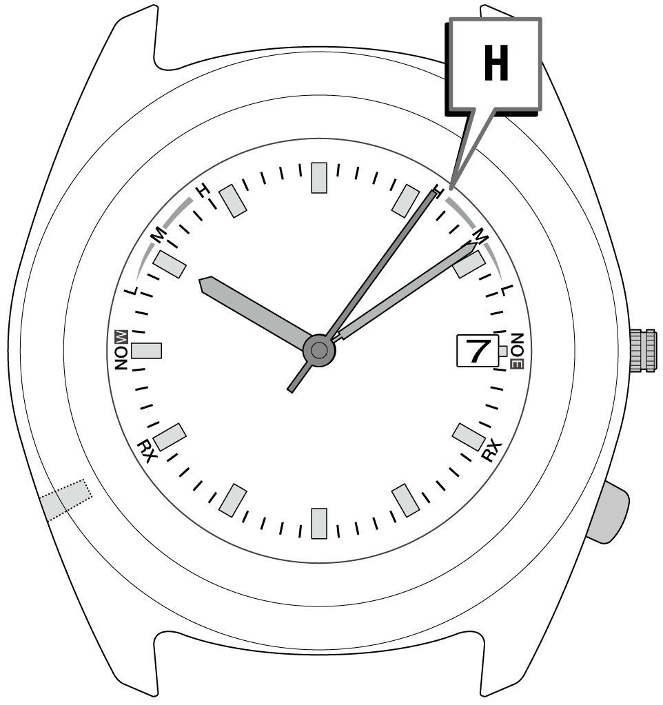 「H」「M」「L」は電波の受信中にも表示されます。