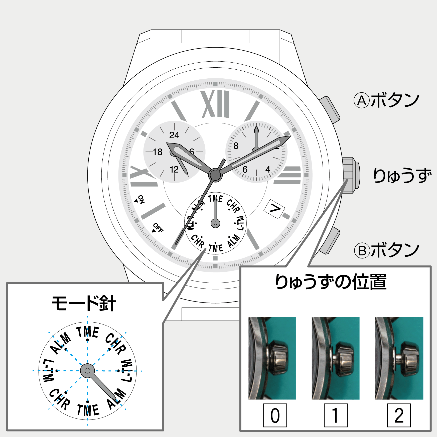 - 確認が終わったら、りゅうずを回して、モード針をTMEに合わせる