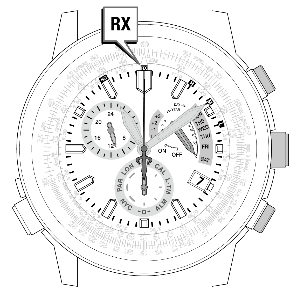 秒針が「RX」を指している間は、できるだけ時計を動かさないようにします。