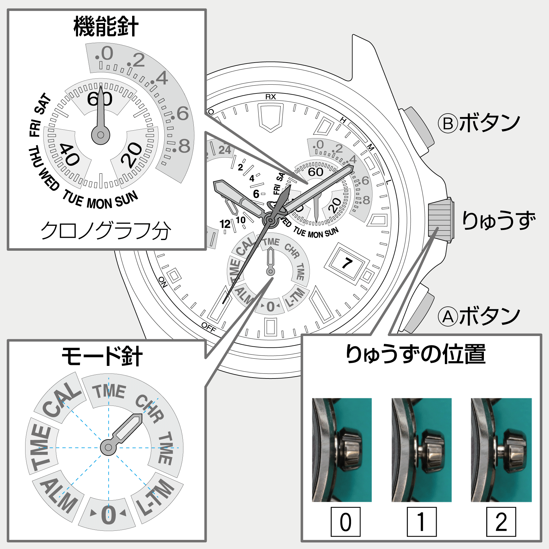 - りゅうずを回して、モード針を「CHR」に合わせる
