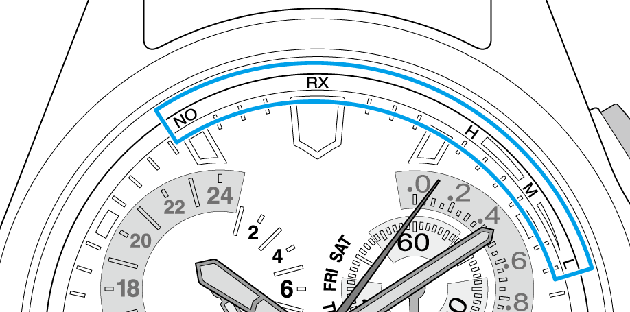 これらの表示は、受信環境の適性を示すもので、時計の受信性能には関係はありません。