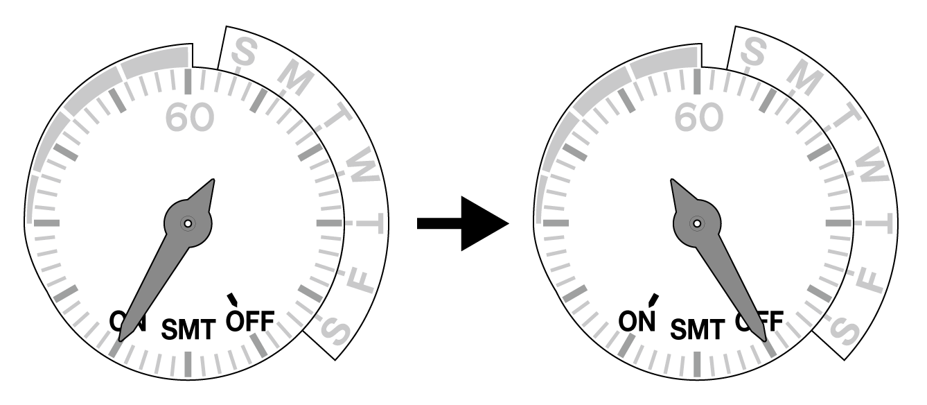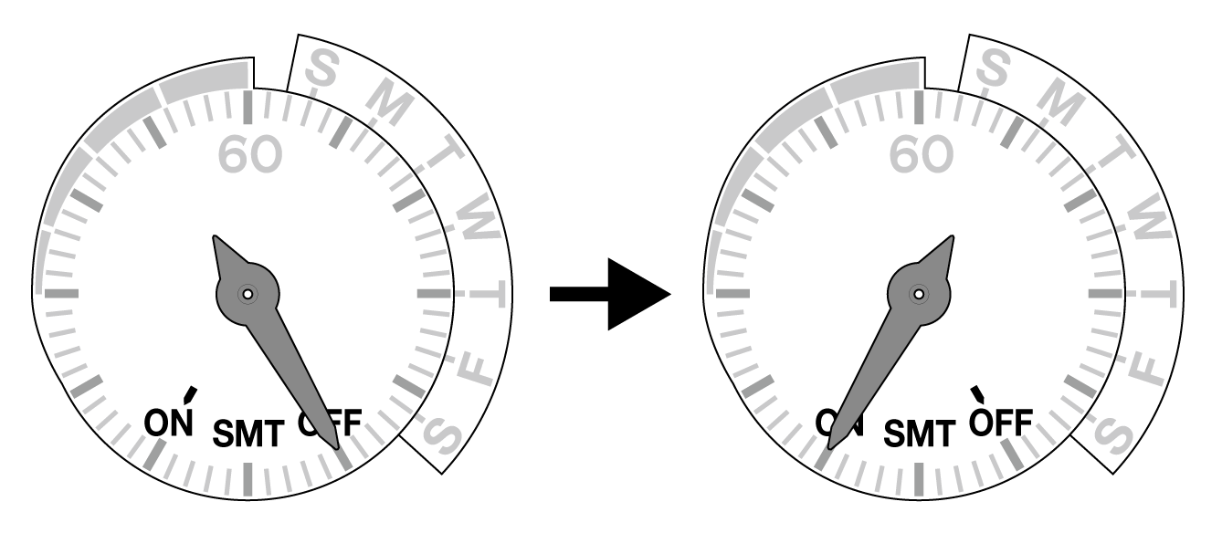 | SMT ON 表示時刻: サマータイム | SMT OFF 表示時刻: 標準時刻 |