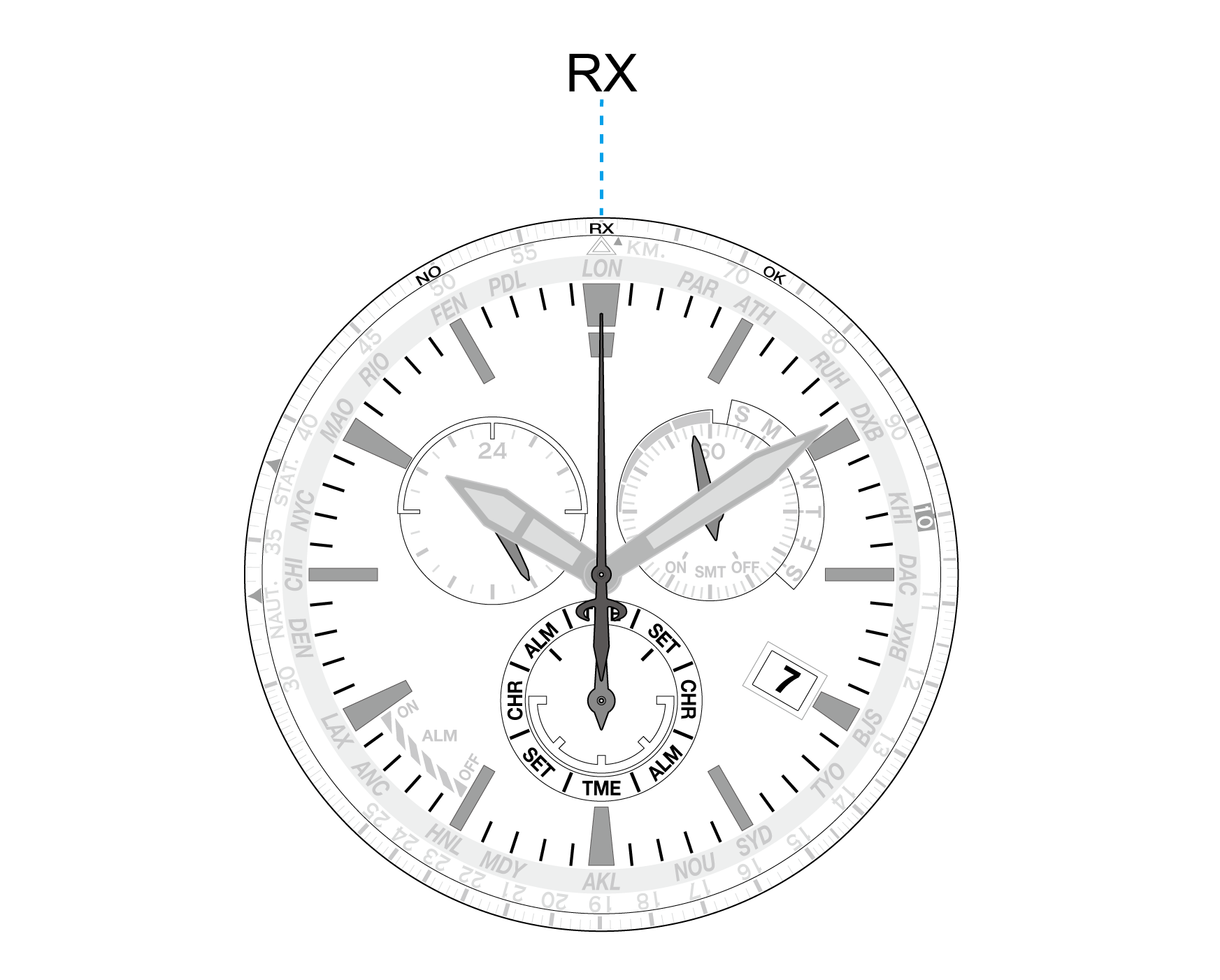 秒針が「RX」を指している間は、できるだけ時計を動かさないようにします。