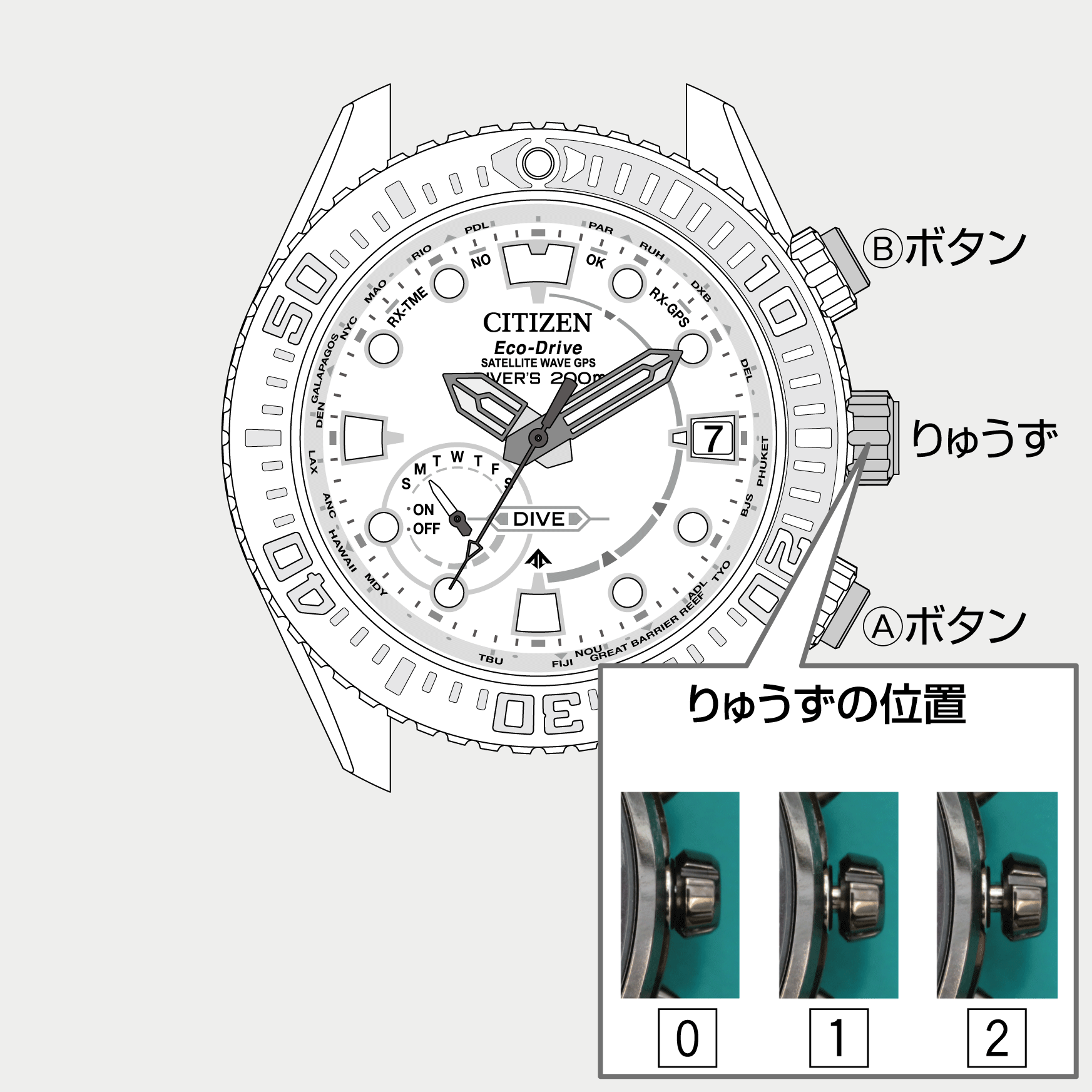 受信を中断したいときは、秒針が秒表示に戻るまで、いずれかのボタンを押し続けます。