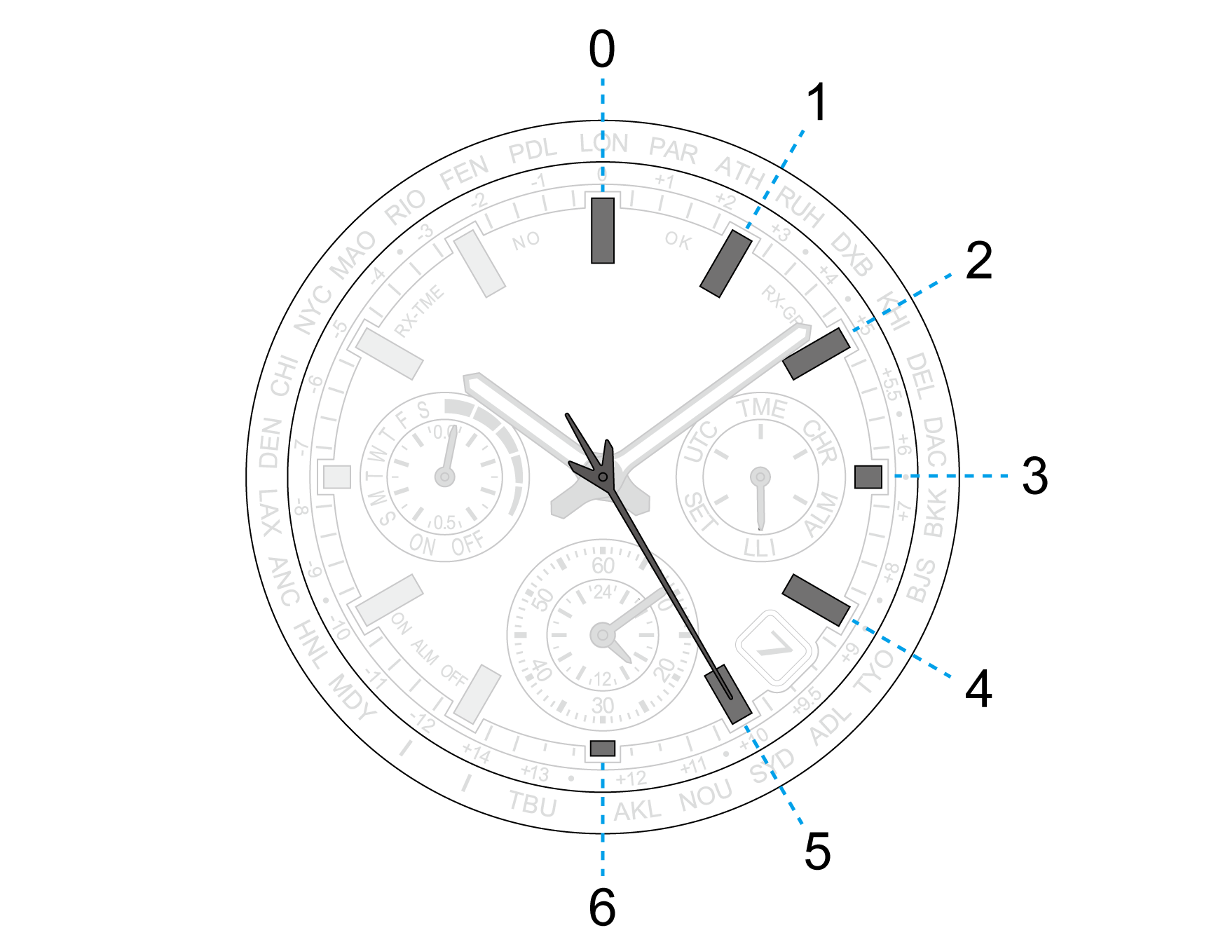 また、同じ明るさでも、時計の文字板に当たる光の角度の違いなどにより、表示レベルが変化する場合もあります。 - 同じ環境でも、モデルによって表示レベルが異なる場合があります。