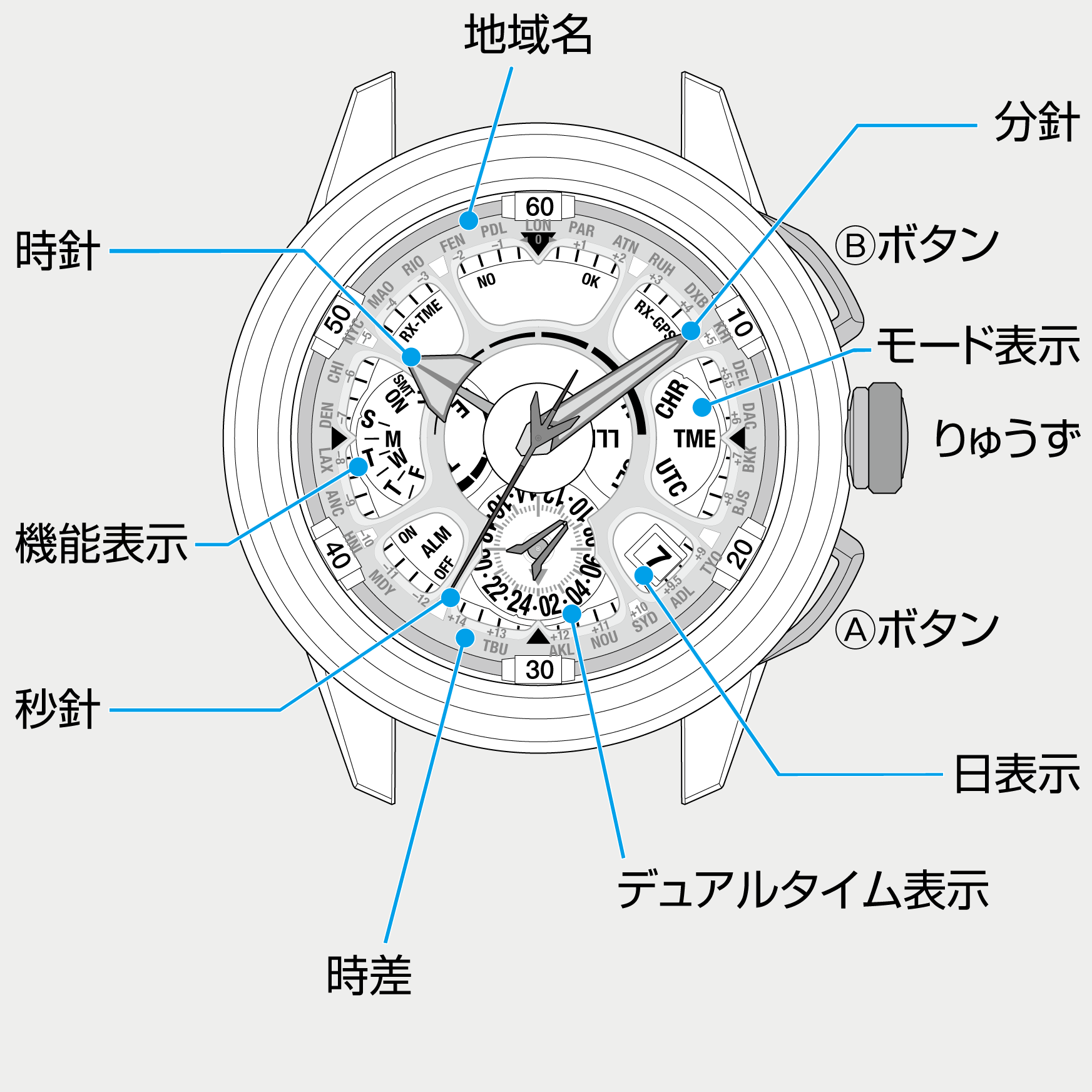 説明のイラストが、お買い上げいただいた時計と異なっていても機能上の違いはありません。