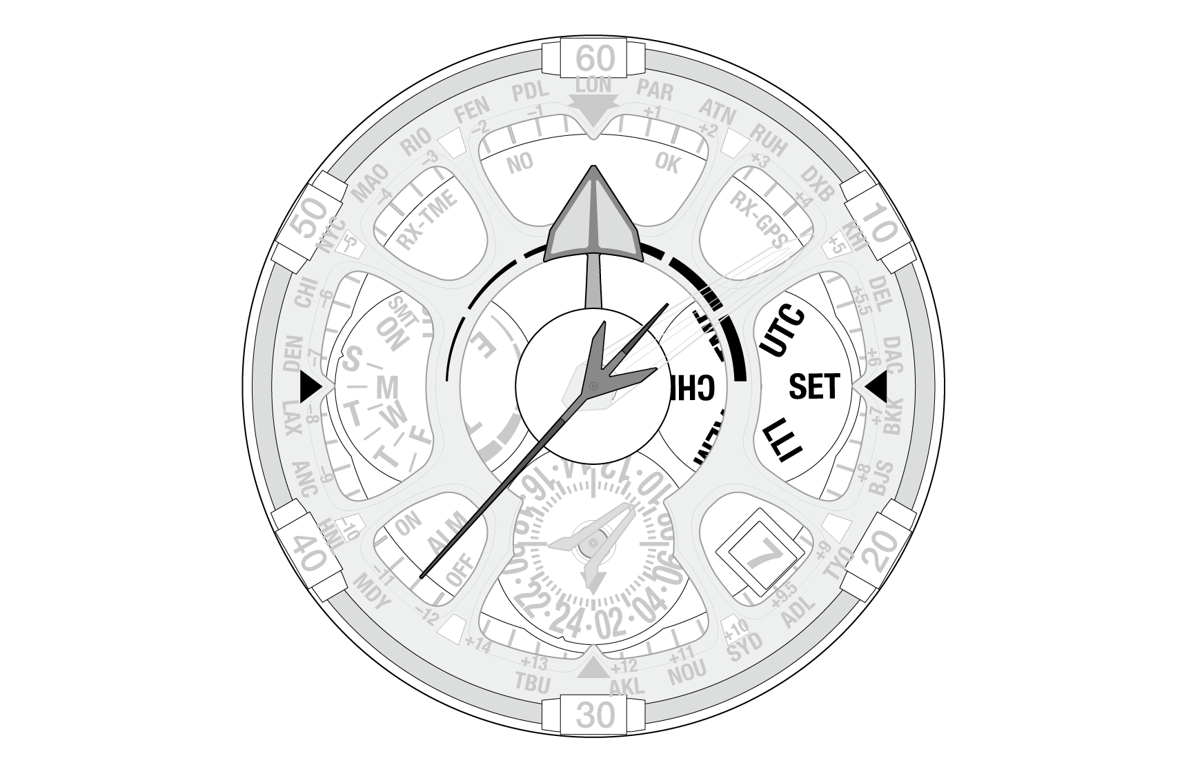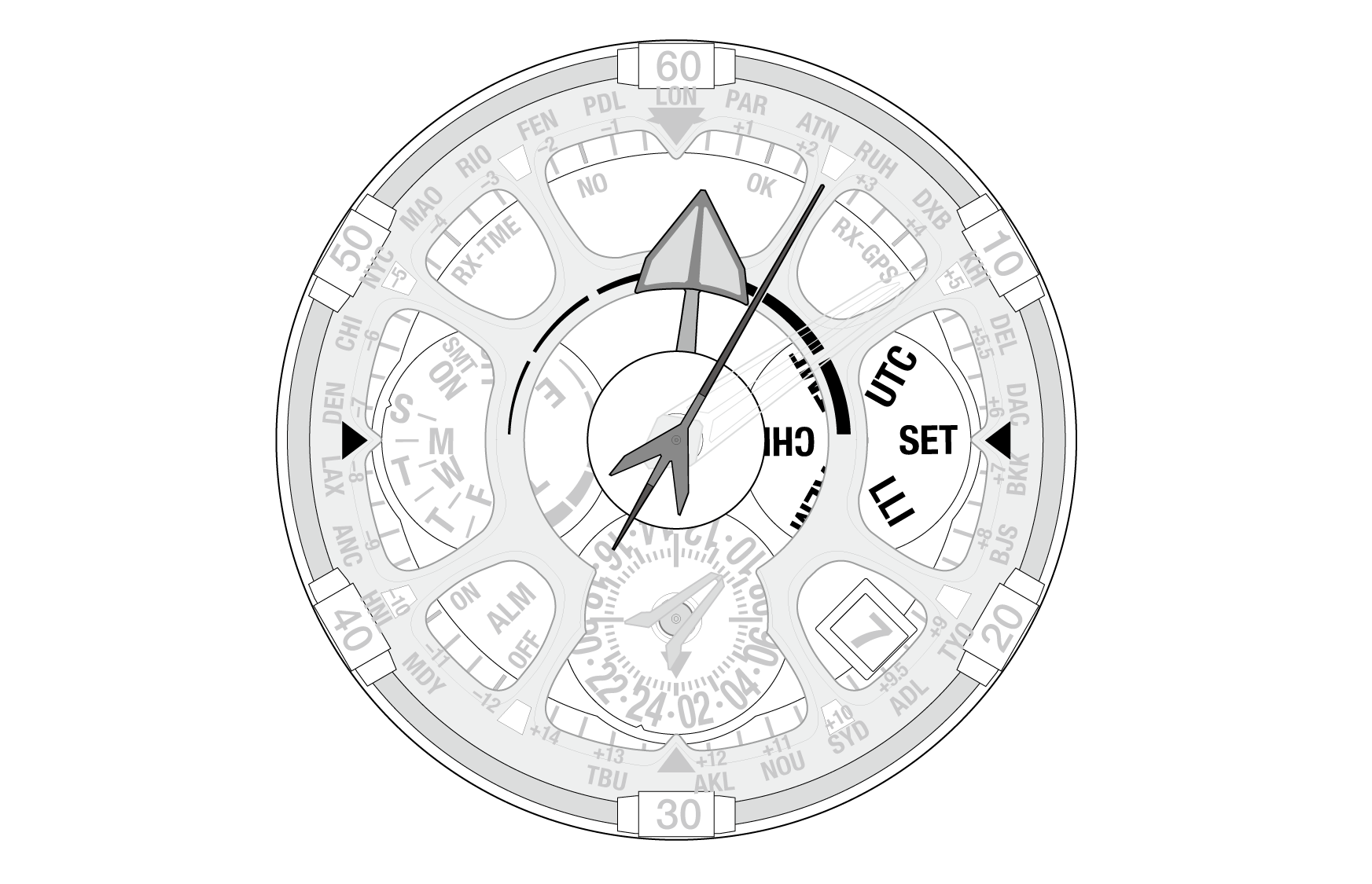 - うるう秒の設定が正しくないときは、りゅうずを回して設定を修正する