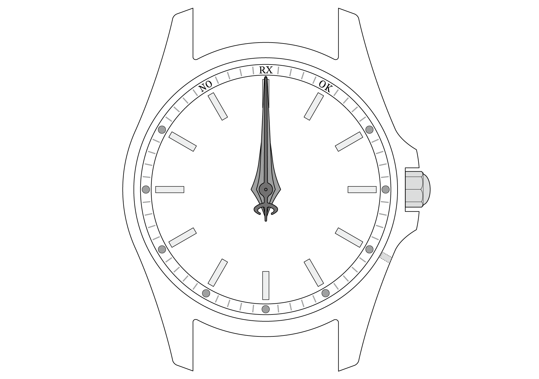 - りゅうずを回して、時針を正しい基準位置に合わせる