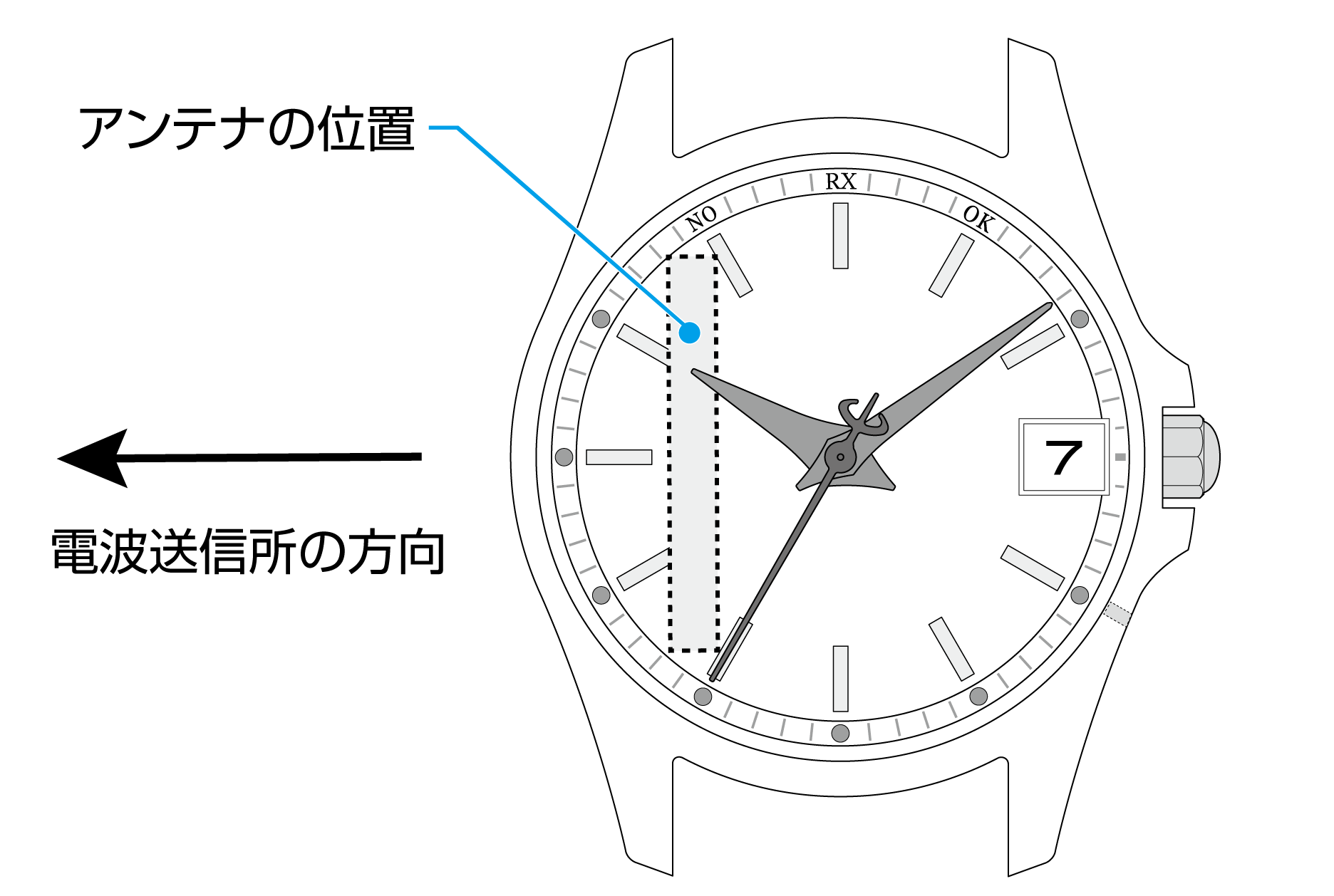秒針が「RX」を指している間は、できるだけ時計を動かさないようにします。
