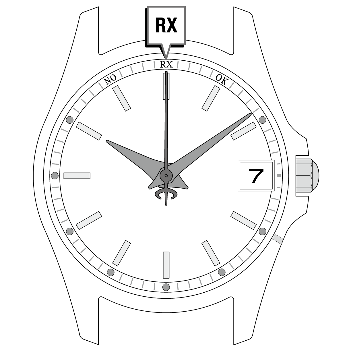 秒針が「RX」を指している間は、できるだけ時計を動かさないようにします。