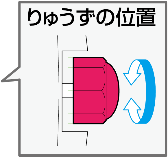 動きを止めるには、りゅうずを左右どちらかに回します。