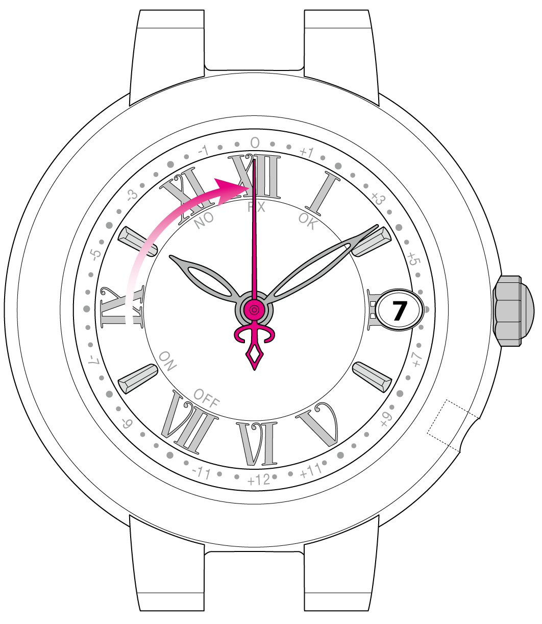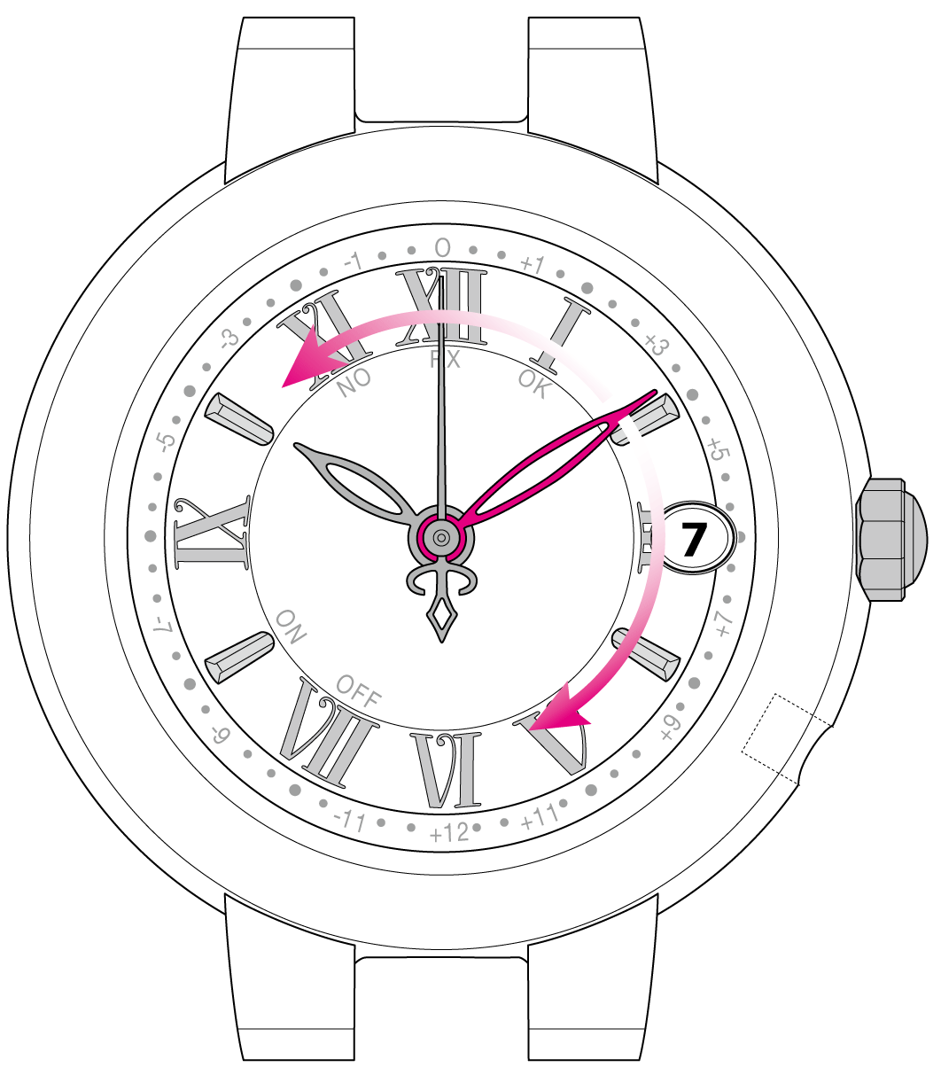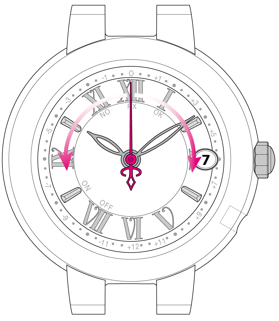 りゅうずを素早く連続回転させると、針・表示が連続で動きます。