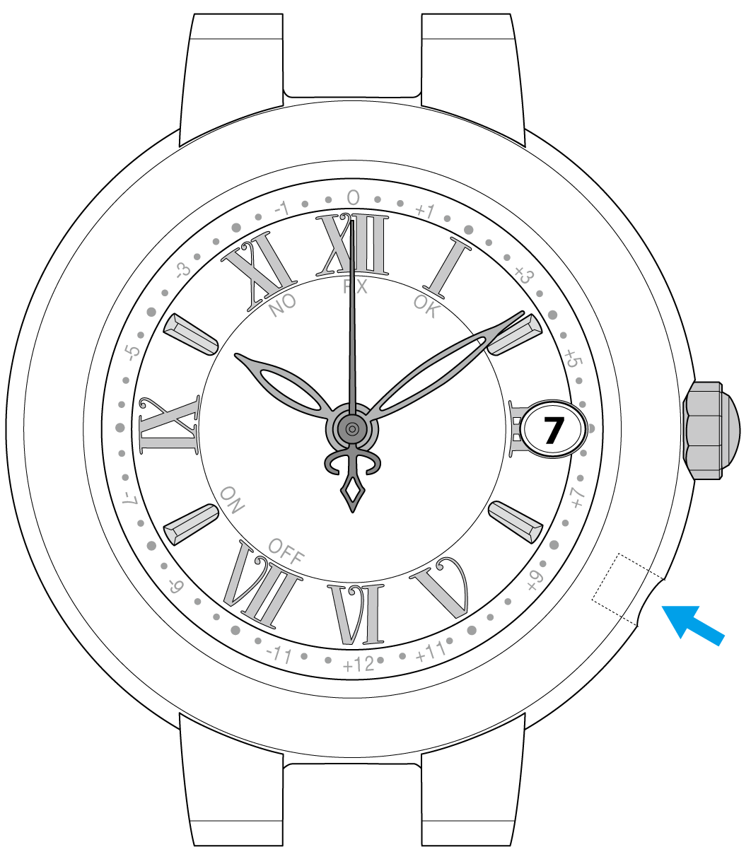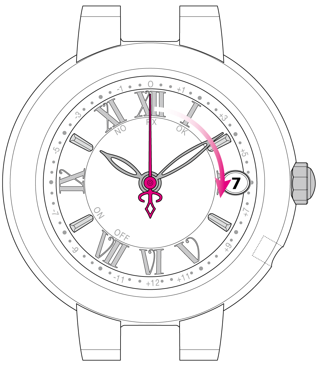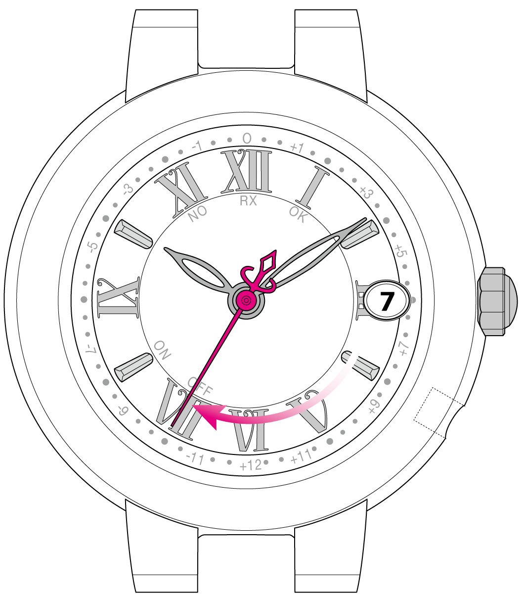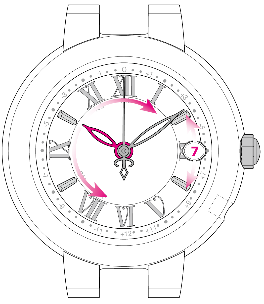 りゅうずを素早く連続回転させると、針・表示が連続で動きます。