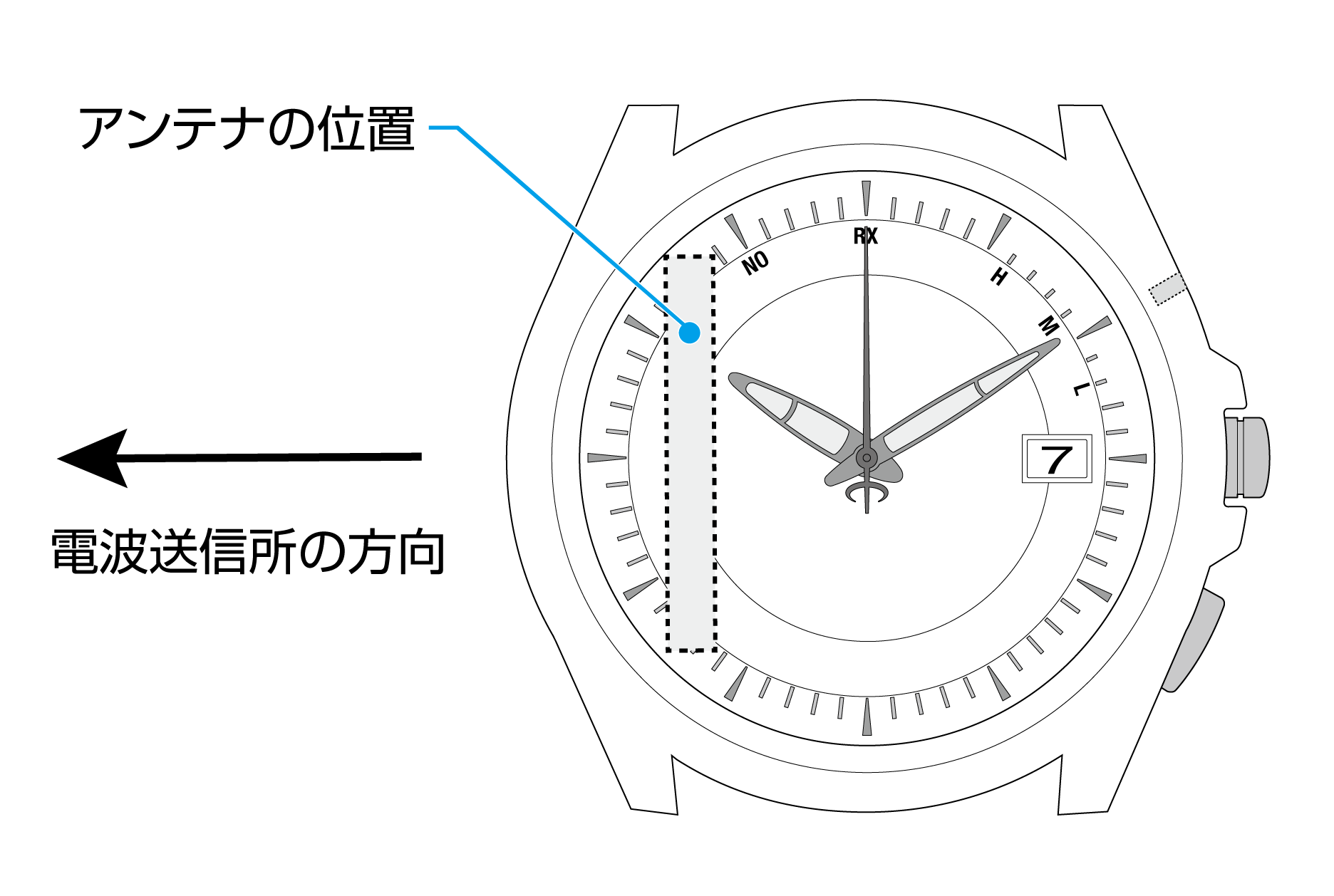 秒針が「RX」を指している間は、できるだけ時計を動かさないようにします。