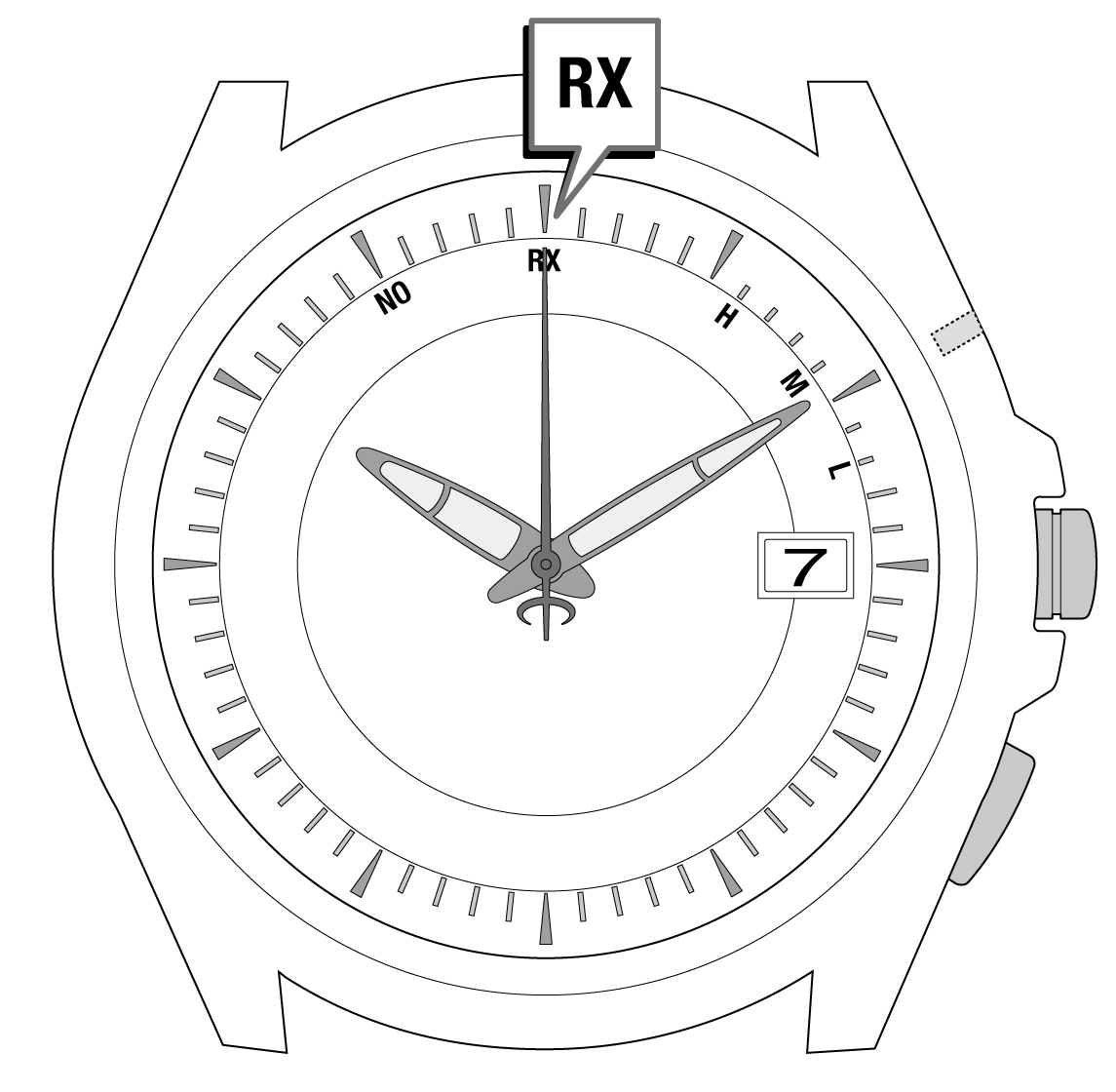秒針が「RX」を指している間は、できるだけ時計を動かさないようにします。