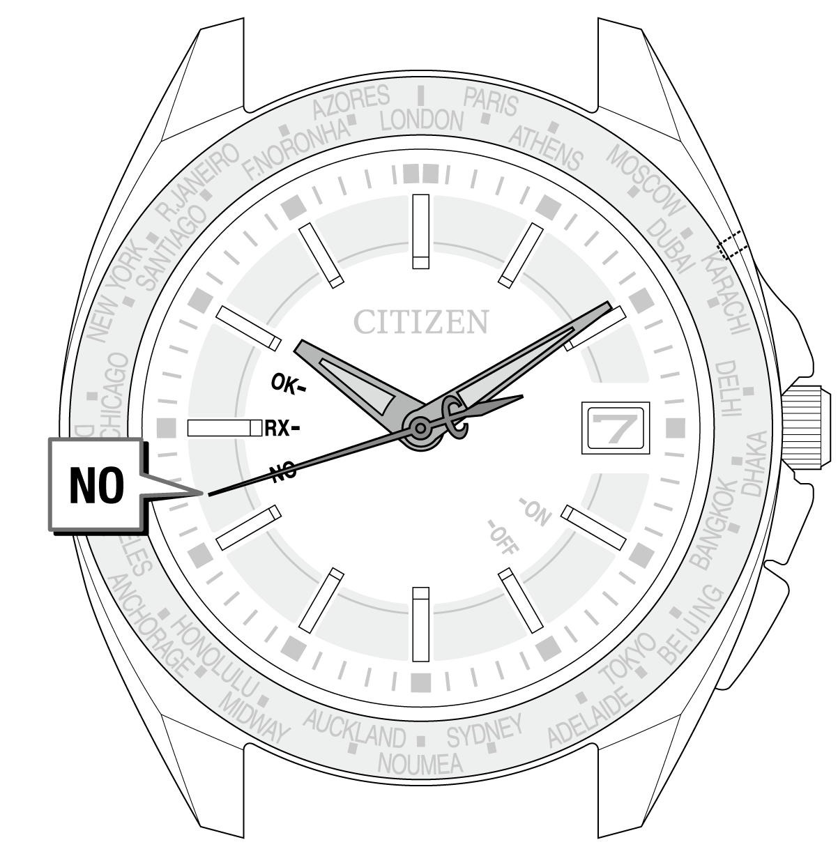 秒針が「RX」を指している間は、できるだけ時計を動かさないようにします。